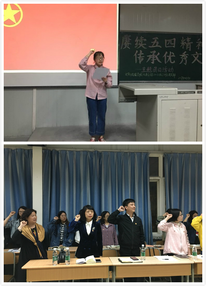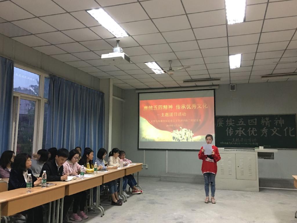 为纪念五四运动100周年,深入学习习近平总书记在中共中央政治局第十四次集体会议讲话精神,加强对五四运动和五四精神的学习理解,4月29日晚上七点半,pp电子网站2018级汉语言文学专业3班在1024教室开展了“赓续五四精神,传承优秀文化”主题团日活动,pp电子网站团委书记李光梓,pp电子网站党总支书记于咏梅,团总支书记、学工办主任沈菲,pp电子网站辅导员艾全霞,以及汉语言文学2018级3班全体同学参加了本次活动。