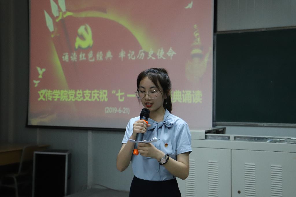 七月,见证给岁月的是一串串永远的火红,澎湃在我们心头的是无休无止的涛声。为庆祝中国共产党建党九十八周年,以诵读红色经典的形式,教育党员不忘初心,牢记使命,砥砺前行跟党走;在诵读红色经典中回望激情燃烧的岁月,缅怀革命先驱光辉的业绩,以红色经典促党性修养。2019年6月21日,pp电子网站在江南校区10号教学楼1025教室开展“诵读红色经典,牢记历史使命”庆祝“七一”红色经典诵读主题党日活动。pp电子网站党总支委员会、党支部委员会成员,学生第一、第二党支部学生党员,教工第一、第二党支部部分党员,第18期发展对象、第47期积极分子参与了本次诵读活动。本次活动由2017级秘书学一班学生杨彩艺、党卓文主持。