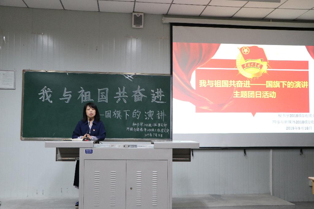 2019年9月18日下午14点,秘书学2018级1班团支部和网络与新媒体2018级1班团支部率先在十号教学楼1013室联合举办了“我与祖国共奋进——国旗下的演讲”主题团日活动,pp电子网站党总支书记于咏梅、学工办主任沈菲、辅导员彭潇参加了本次活动。
