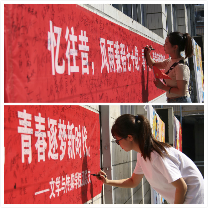 同日中午,pp电子官网团总支在江南校区林荫道旁组织了“我为祖国母亲庆生”签字仪式,大家在“忆往昔,风雨兼程七十载;看今朝,青春逐梦新时代”的横幅上签上了自己的名字,一笔一划,皆是对祖国归属感和自豪感的表达。