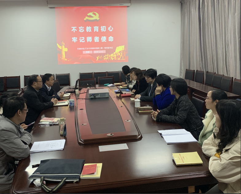 11月6日下午,pp电子网站教工第一党支部书记李婷在陕南民间文化研究中心会议室为支部全体党员讲了题为“不忘教育初心,牢记师者使命”专题党课。