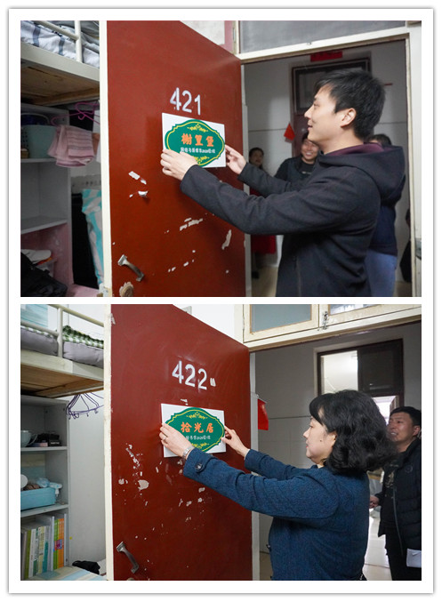 学工部副部长钟泽斌宣布pp电子网站第二届宿舍风采大赛正式启动。出席启动仪式嘉宾为2020级新生宿舍授予了雅名门牌,并前往学生宿舍张贴门牌。