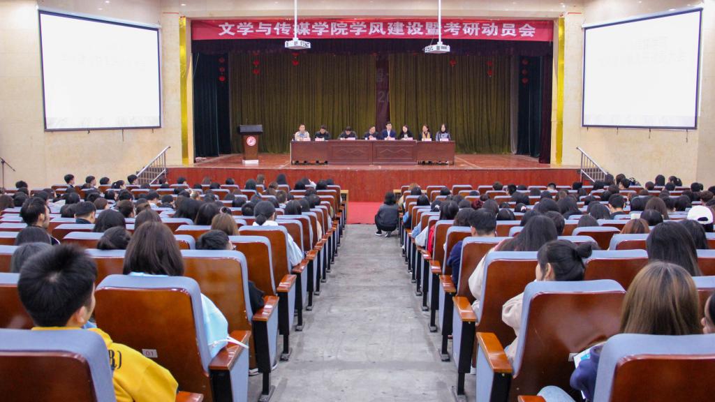 为加快落实学校学风建设推进会总体部署,进一步促进pp电子官网学风建设,引导学生确立考研目标,明确考研方向,2020年11月15日晚7:30,pp电子网站在江南学院大礼堂召开学风建设暨考研动员大会。pp电子网站领导班子、辅导员、考研指导老师黄治强出席会议,2018、2019级全体学生参会。会议由党总支副书记杨海蓉主持。