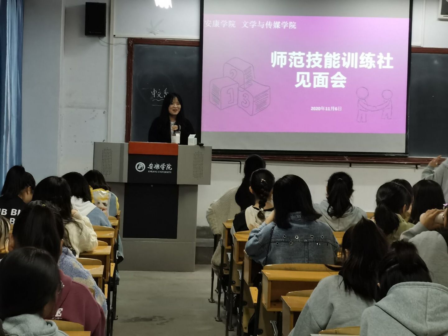2020年10月2日,师范技能训练社换届大会顺利召开。在以徐婷为新任社长的新一届社团干部的带领下, 10月29日,社团在1026教室举行纳新面试。吸纳了一批积极、进取、踏实的新干事,为师范技能社的未来发展注入了新鲜血液。