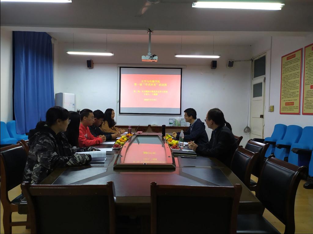 本届“学术沙龙”活动周设置了语言学、文学理论与外国文学、中国古代文学、中国现当代文学、新闻传媒学5个学科方向,举办了5场“学术沙龙”。第一场“学术沙龙”的主题是“‘新文科’的概念与内涵”,主讲人是院长杨运庚,语言学方向全体教师参加;第二场“学术沙龙”的主题是“社交媒体中隐私的边界与管理”,主讲人是青年教师王薇薇,新闻传媒学方向全体教师参加;第三场“学术沙龙”的主题是“法国和俄国十九世纪现实主义文学比较”,主讲人是副院长朱云,文学理论与外国文学方向全体教师参加;第四场“学术沙龙”的主题是“贾平凹·陕西·乡土中国”,主讲人是周龙田副教授,中国现当代文学方向全体教师参加;第五场“学术沙龙”活动的主题是“百年‘颂体诗’研究综述”,主讲人是郑继猛教授,中国古代文学方向全体教师参加。