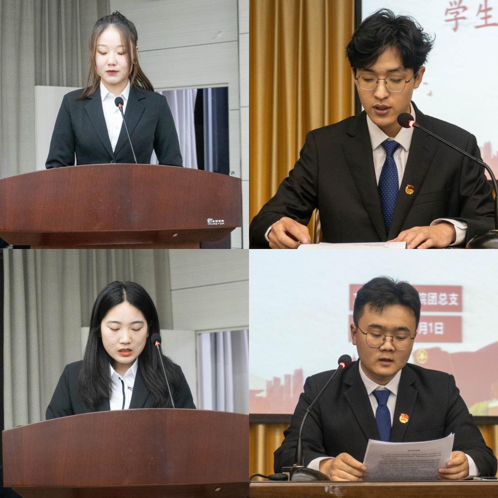 彭潇宣布了pp电子官网第15届团总支、学生分会的机构名单,新任主席团代表邓博予和团总支副书记薛镯分别向大会报告了新学年开展学生分会、团总支工作的思路和设想。邓博予领学了学生分会誓词。