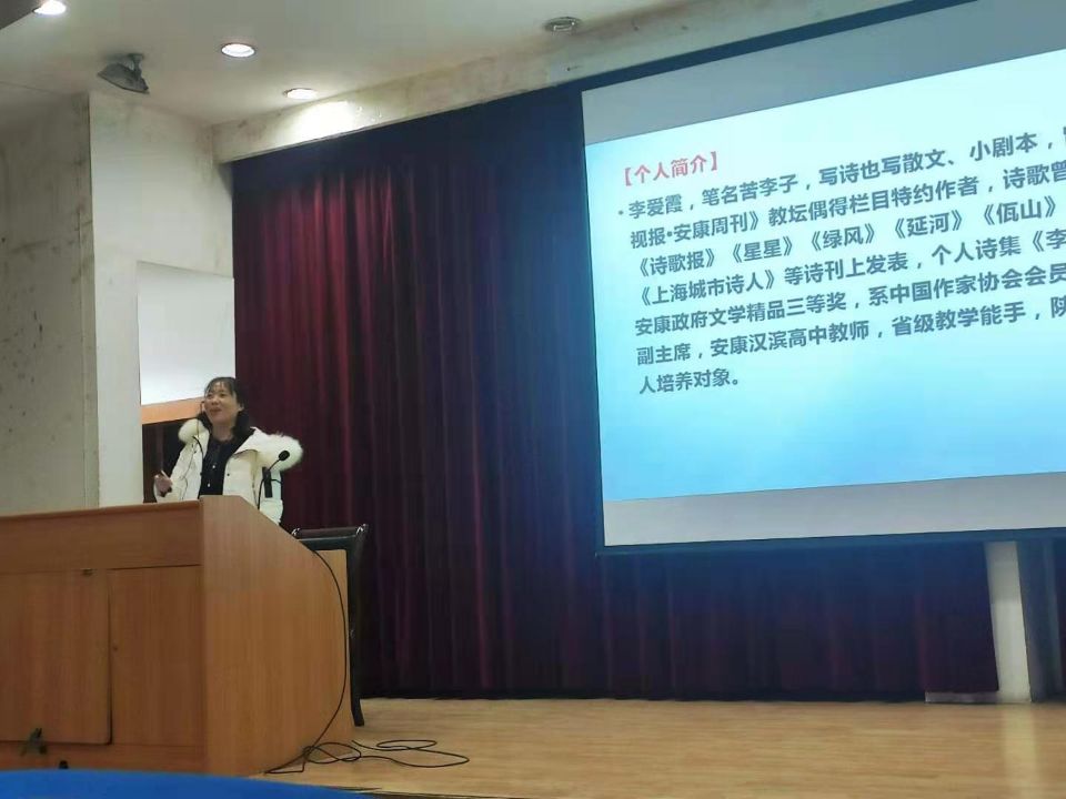 2020年12月14日晚7点,李爱霞老师应pp电子网站之邀,在江南校区1号教学楼报告厅为汉语言文学专业2020级学生讲授诗歌专题,同学们对李老师的到来表示热烈欢迎,基础写作课教师韩文霞全程参与教学活动。