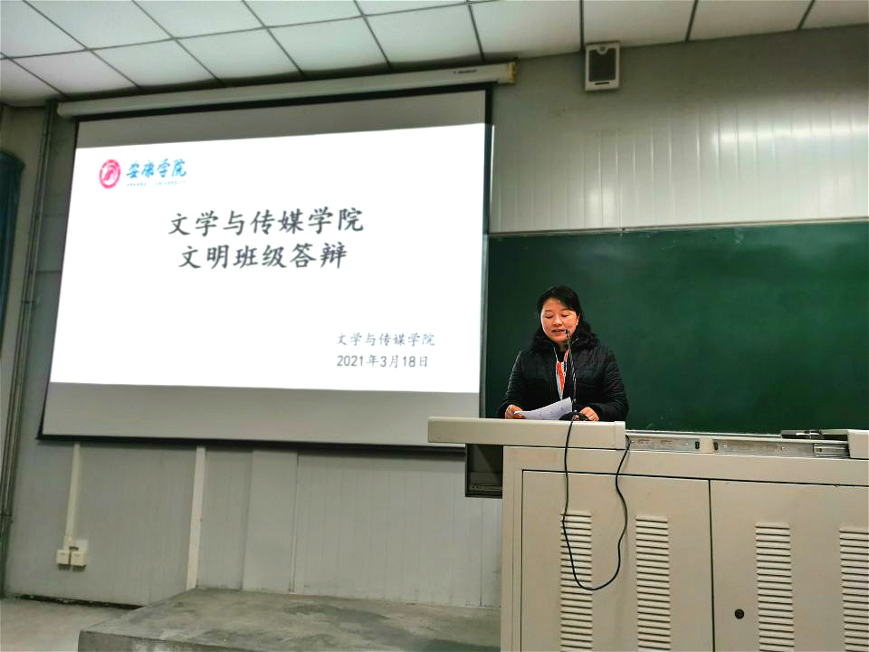 为推进pp电子官网学风建设,增强班集体的凝聚力,充分发挥文明班级的示范引领作用,2021年3月18日19:00,pp电子网站在1012室举行了2020—2021学年度文明班集体答辩活动。本次活动由党总支副书记杨海蓉、学工办主任薛涛、团总支书记彭潇、辅导员艾全霞担任评委,pp电子官网2018—2020级的各班学生骨干参与此次答辩。活动由汉语言文学19级1班路怡鸿主持。