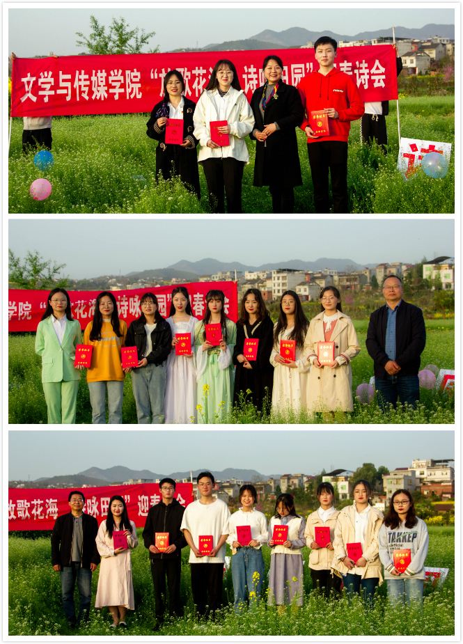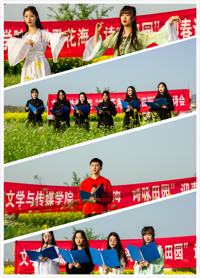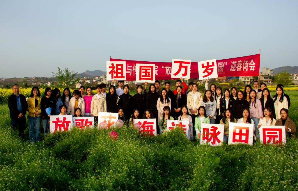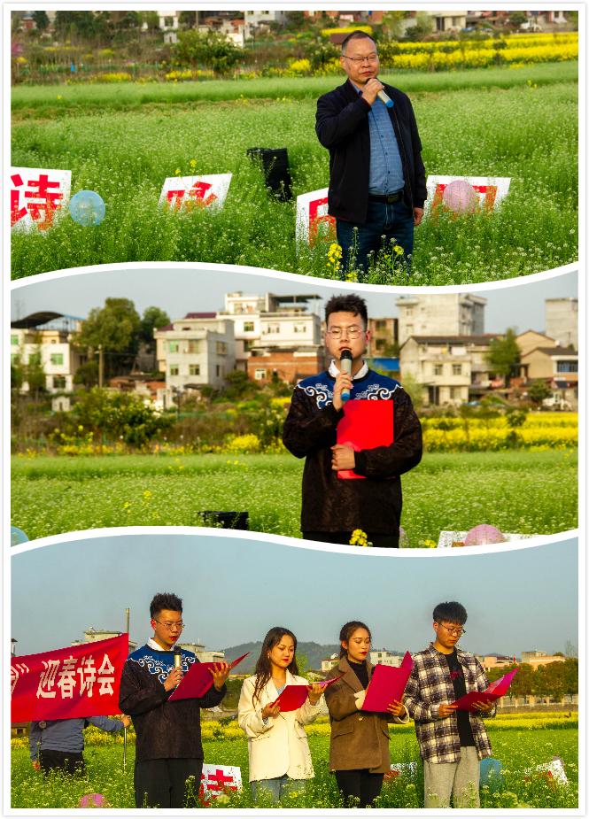 3月22日下午,pp电子网站组织学生在张滩镇黄洋河畔举办了“放歌花海.诗咏田园”迎春诗会。本次活动由影视戏剧社承办,全院48名学生报名参加了朗诵会。pp电子网站党总支副书记杨海蓉、郑继猛教授、辅导员邹棠华参加诗会。