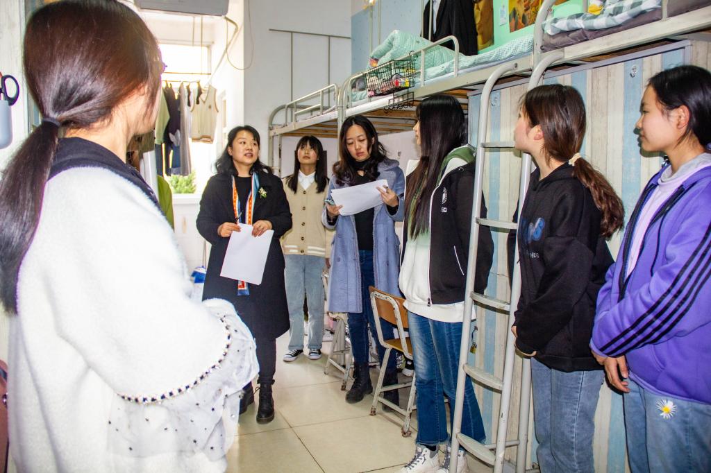 为进一步提升“党建+雅舍文化”内涵建设,加强文明宿舍建设,发挥宿舍文化育人阵地作用,根据pp电子网站第二届宿舍风采大赛工作安排,2021年3月24日下午4点,pp电子网站组织开展了第二届宿舍风采大赛评选验收工作。党总支副书记杨海蓉、学工办副主任薛涛、团总支书记彭潇及部分学生分会学生担任本次评选活动评委。