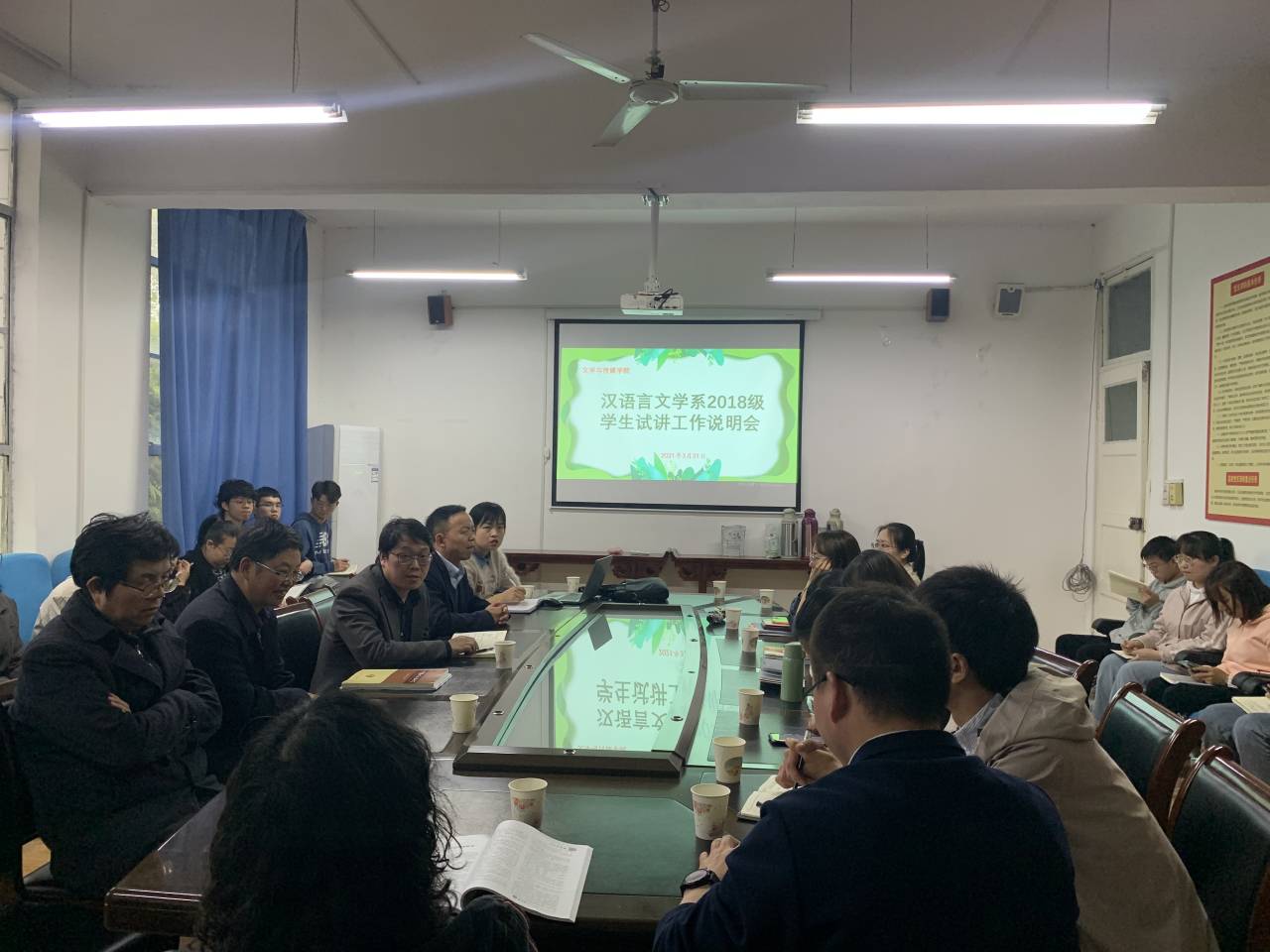 2021年3月31日下午,汉语言文学系2018级试讲工作说明会在2307会议室顺利召开。pp电子网站院长杨运庚、副院长朱云,全体指导教师以及2018级学生试讲小组组长参加会议。会议由汉语言文学系主任李婷主持。