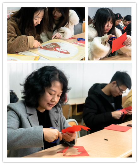 之后,他从耳闻、目见、足践、手辨四个角度向同学们介绍这项传统艺术,让同学们有了具体直观的了解。哪吒、麒麟送子、喜鹊登梅……一幅幅精美的剪纸,一句句生动的讲解,使在场的同学对剪纸这门传统的艺术产生浓厚的兴趣。