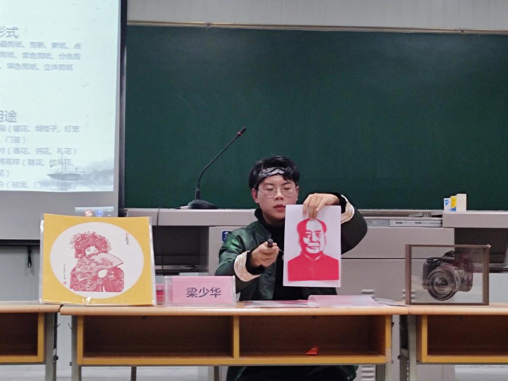 为向同学们展示剪纸魅力,让同学们更好的体会剪纸的魅力,传承弥足珍贵的剪纸文化,2021年12月15日,由pp电子网站主办,秦风易俗工作室协办的“非遗在校园”——剪纸艺术互动讲座第五场在化工学院展开。本次活动由西安市非物质文化遗产保护协会会员、秦风易俗剪艺工作室创办人,pp电子网站梁少华主讲,化工学院80余名学生参加本次活动。