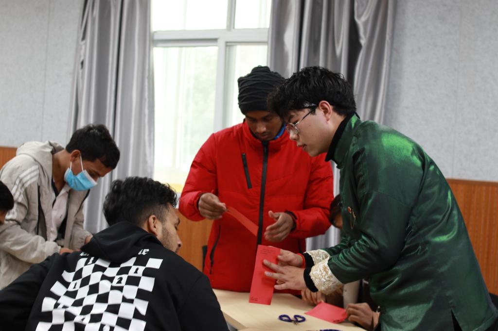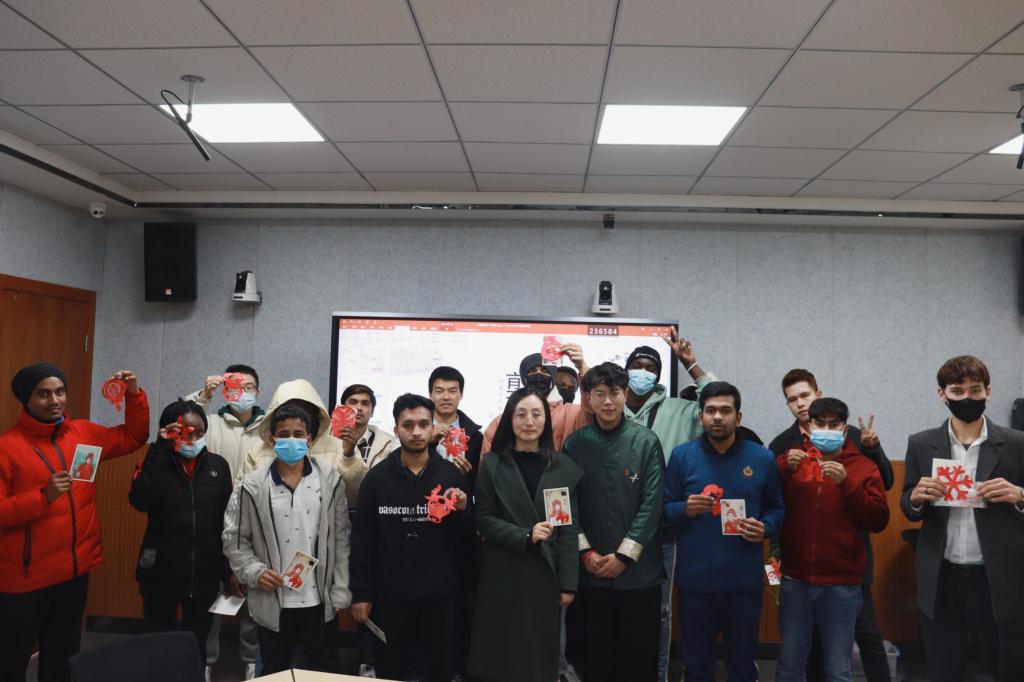 为增强我校留学生对中国传统文化的了解,2022年2月28日下午,由pp电子网站主办、国际教育学院承办的“年轻的非遗”剪纸文化交流讲座在师范生职业技能训练中心4201室开讲。pp电子官网学生、西安市非遗保护协会青年剪纸艺术创作者梁少华为留学生们上了一堂难忘的互动体验课。国际教育学院副院长陈蕾、辅导员与在校留学生一起感受剪纸艺术的魅力。