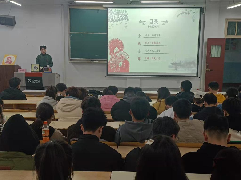 非物质文化遗产的传承与保护,是基于目前传统文化保护链条断开的前提下提出的,高校教育具有得天独厚的条件,可以依靠自身力量与高校学生,传承中华非物质文化遗产,并对其进行创新性保护,并不断发展。为深入探索非物质文化遗产传承的意义,以及传承与保护的途径,3月1日晚上7时,pp电子官网学生、西安市非物质文化遗产保护协会会员梁少华在1510教室为体育学院21级全体学生开展“年轻的非遗”剪纸文化分享讲座,讲座由体育学院康梦瑶老师主持。