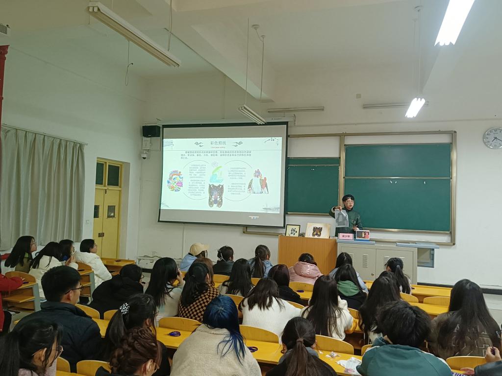 整场讲座,伴随主讲人对剪纸艺术的讲解,同学们对它的了解从浅到深,并从剪纸作品中体会到了剪纸的艺术特色。