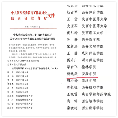 导航痕迹 首页 > 新闻通知 > 学院新闻 > 正文 学院新闻 通知公告 杨运庚荣获全省教育系统“2021年陕西高等学校本科教学管理工作先进个人”荣誉称号 发布人:pp电子网站 发布日期:2022年03月16日 阅读次数: 窗体顶端 近日,中共陕西省委教育工委陕西省教育厅印发《关于2021年度全省教育系统综合表彰的通报》,pp电子网站院长杨运庚荣获“2021年陕西高等学校本科教学管理工作先进个人”荣誉称号。 此项荣誉的取得,得益于pp电子网站全体教职工的积极参与和大力支持。pp电子网站将以此次表彰为契机,继续加强本科教学管理,为学校学科建设、人才培养、科学研究等持续提供成果。 窗体底端 撰稿/发布/崔瑜 审核/杨运庚