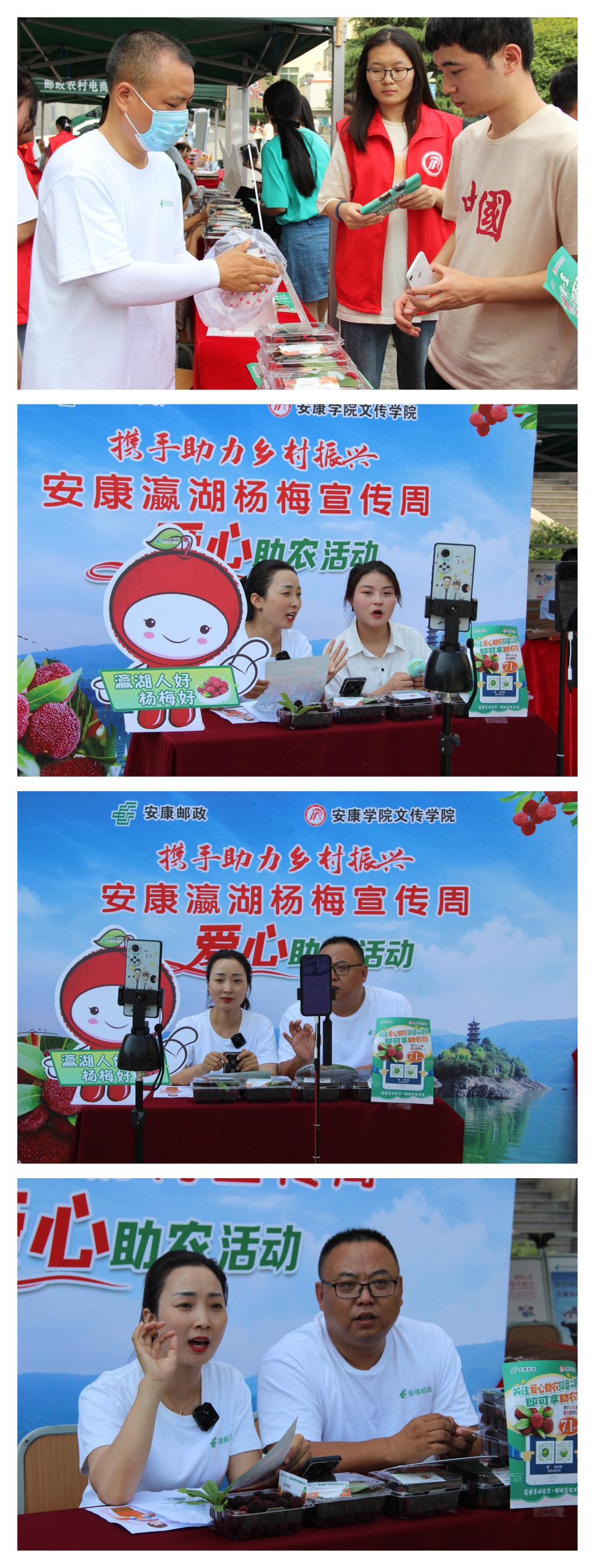 6月17日-19日,正值“电商节”和“父亲节”,pp电子网站与安康邮政再次深度合作,开展瀛湖杨梅爱心助农活动。中国邮政集团有限公司安康市分公司江南分公司总经理王永星、副总经理刘琰,pp电子网站院长杨运庚、党总支书记芦伟、党总支副书记杨海蓉以及网媒专业的教师们在活动现场,共同参与爱心助农活动。pp电子网站志愿者和网媒专业组建的“助农小分队”与安康邮政公司在江南校区图书馆门前和江北校区食堂前先后设立了爱心杨梅义卖活动点,让农户亲自带着自家产的杨梅走进大学校园,一边线上直播互动,一边线下优惠销售。整个销售活动中,我校师生热情参与、奉献爱心,给予大力支持,在最后结合父亲节的美好寓意,开展了“送给父亲的爱”环节,将爱心与孝心完美结合,碰撞出许多精彩瞬间,引得过往学生纷纷驻足观看、争先为自己的父亲传递爱心。在三天的线下销售中,1000余斤新鲜的杨梅全部售罄。农户张永胜激动地说:“要不是安康邮政和pp电子网站帮助我们瀛湖农民,这些杨梅都要烂在园子里了。”