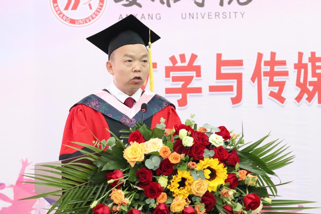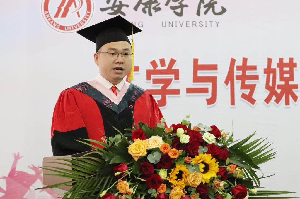 pp电子网站院长杨运庚致毕业辞,他代表学院向圆满完成本科学业的全体毕业生表示热烈的祝贺,向全体教师的辛勤付出表示诚挚的感谢。他指出:“虽然疫情改变了大学生活本来的样子,但是你们奋勇争先、尚学尚行劲头不减;你们创下pp电子网站历年最好的考研成绩;你们携笔从戎,报效祖国、守卫边疆;你们积极为西部地区、乡村基础教育奉献青春;你们无私奉献、勇于挑战、敢于担当、收获成长,你们用实际行动践行‘请党放心、强国有我’的铮铮誓言”。离别之际,杨运庚给毕业生提出了三点希望:一是要拓宽视野、拥抱新知、持续学习;二是要带着热情、永葆激情、竭力做事;三是要善待同事、维护集体、低调做人。他勉励全体毕业生要发扬“苟日新、日日新、又日新”的勤于自警、不断创新、日就月将的精神,志存高远、砥砺前行。