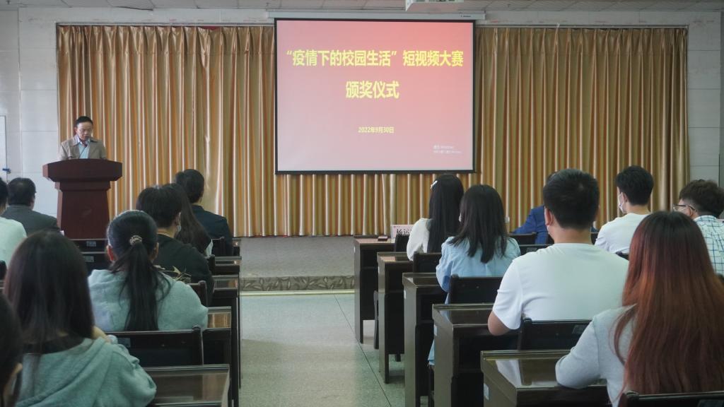 颁奖仪式随后播放了三个一等奖获奖作品,出席领导分别为一等奖、二等奖和三等奖获奖选手进行了颁奖。“疫情下的校园生活”短视频大赛的成功举办,活跃了疫情背景下学生的校园文化生活,提升了学生的短视频制作能力,展现了我校学生的精神风采和专业素养。