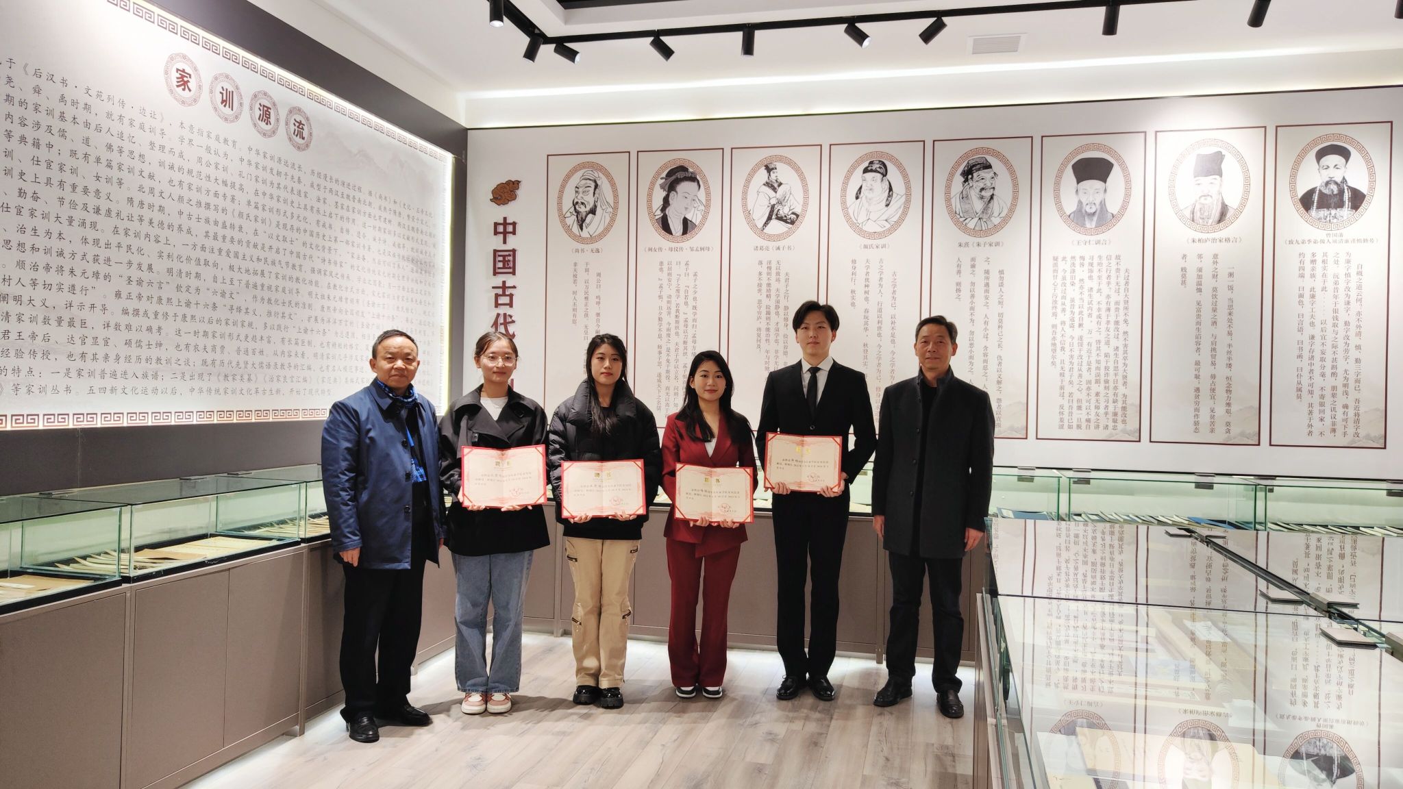 首先,芦伟简要回顾了家风馆成立一年来内部建设、对外交流的基本情况,对首批讲解员的工作给予了肯定。随后,在家风馆内现场举行第一批讲解员聘任仪式,由谢玉玺和杨运庚为第一批讲解员(pp电子网站学生杨钰、郭杨、王思博、水思雨)颁发讲解员聘书,希望讲解员们再接再厉,融会贯通,努力为传播中华优秀传统文化、推进校园廉政文化建设的创新实践贡献一份力量。