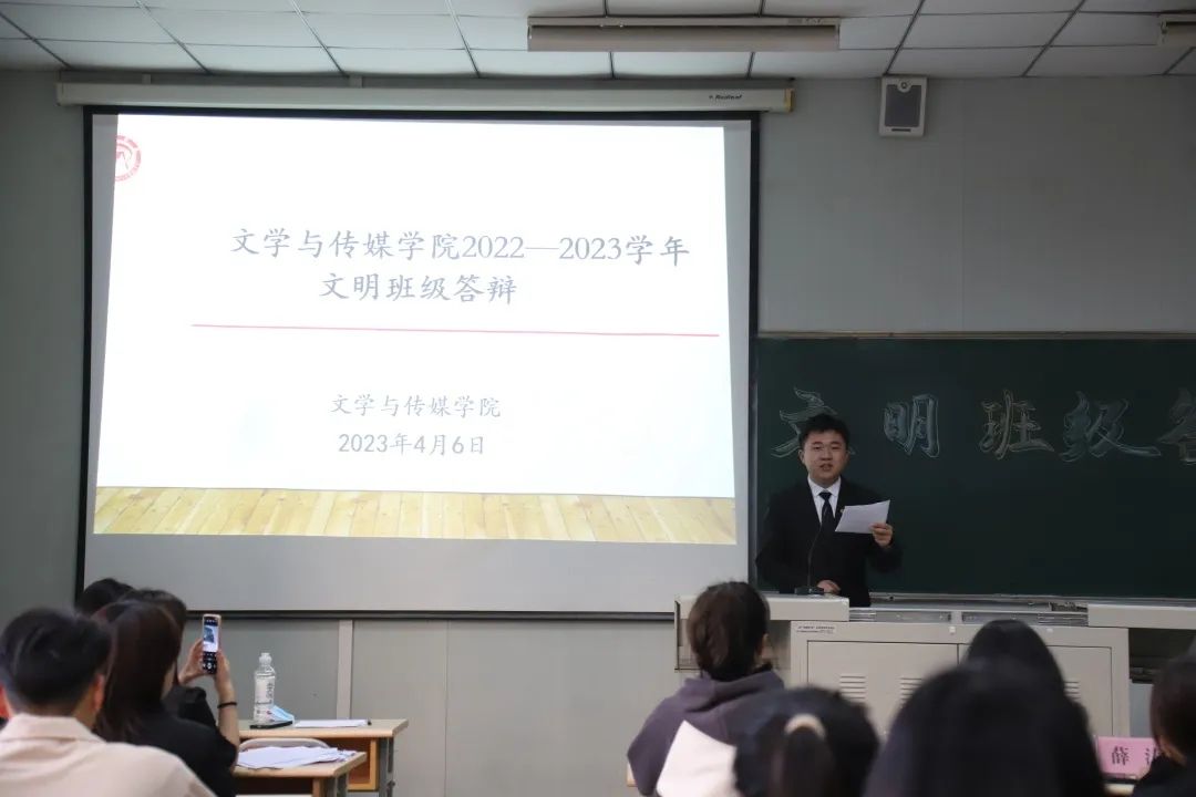 为推进pp电子官网学风、班风建设,规范班级管理,增强班级凝聚力、向心力和创造力,充分发挥文明班级的示范引领作用,pp电子网站于2023年4月6日18:30在1024教室举办2022—2023学年文明班级答辩活动。院党总支副书记杨海蓉、学工办副主任薛涛、团总支书记彭潇和辅导员李欣逸老师担任评委,pp电子官网2020—2022级的各班学生代表参与此次答辩。活动由2022级王文康同学主持。