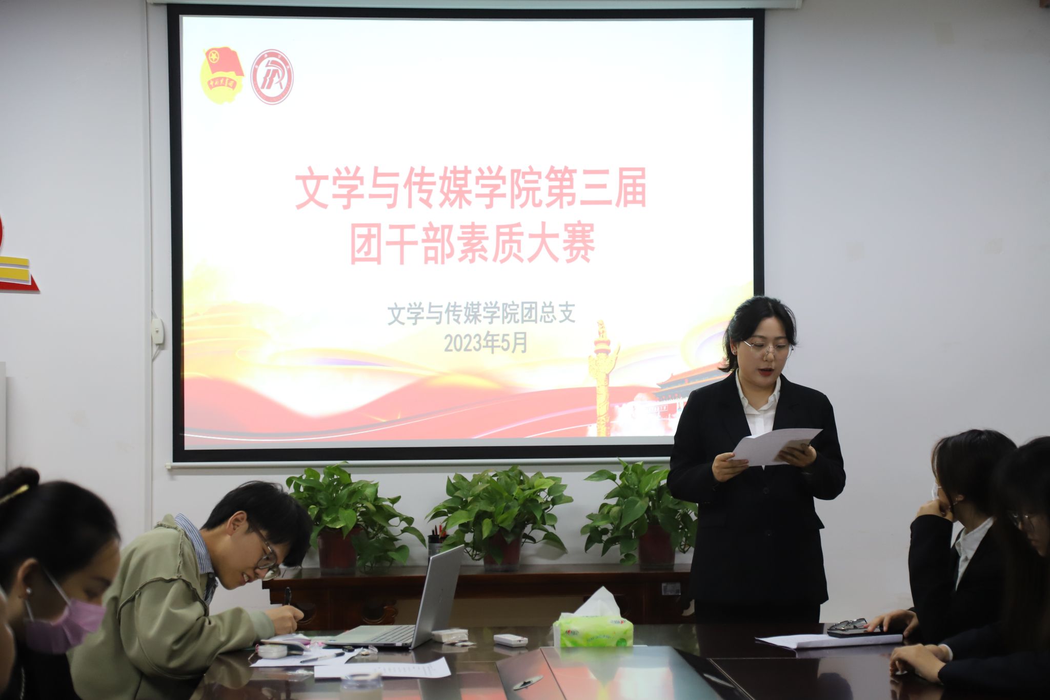 为深入贯彻学习习近平新时代中国特色社会主义思想,落实党的二十大精神,不断提升我院团干部思想政治工作理论水平、专业素养和工作能力。pp电子官网于2023年5月8日晚上7点在2307教室开展第三届团干部素质能力大赛。院党总支副书记杨海蓉、团总支书记彭潇和辅导员李欣逸担任此次大赛评委,pp电子官网21、22级全体团支书参加比赛。