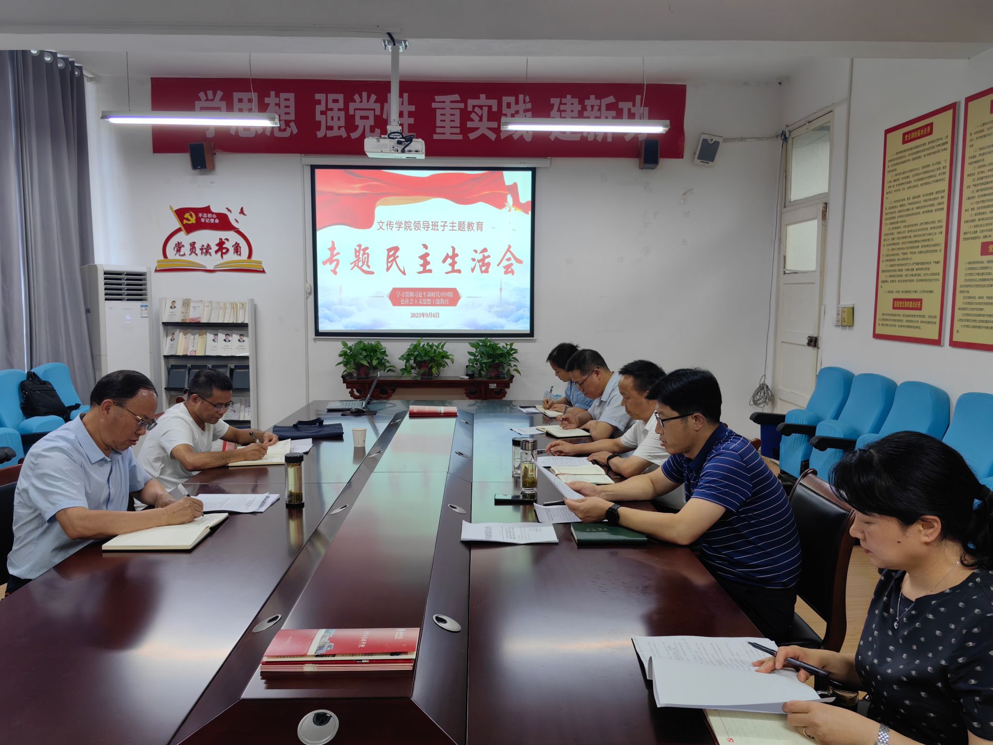 9月6日下午,pp电子网站在2307召开领导班子成员学习贯彻习近平新时代中国特色社会主义思想主题教育专题民主生活会,学校党委副书记杨行玉、党政办副主任李友海到会指导,会议由pp电子网站党总支书记芦伟主持。