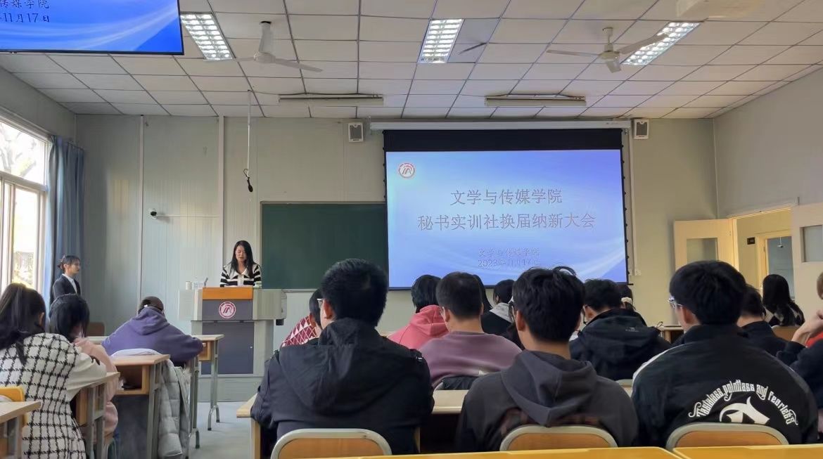 为加强pp电子官网秘书学专业学生实训实践,促进学科交流,搭建更宽阔的秘书实务平台,2023年11月17日下午4点30分,pp电子网站秘书实训社在十号楼1028教室顺利举办了换届纳新大会,指导老师况汉英应邀出席本次会议,秘书学2021级、2022级以及2023级全体同学参会,秘书学2021级陈玉静主持。