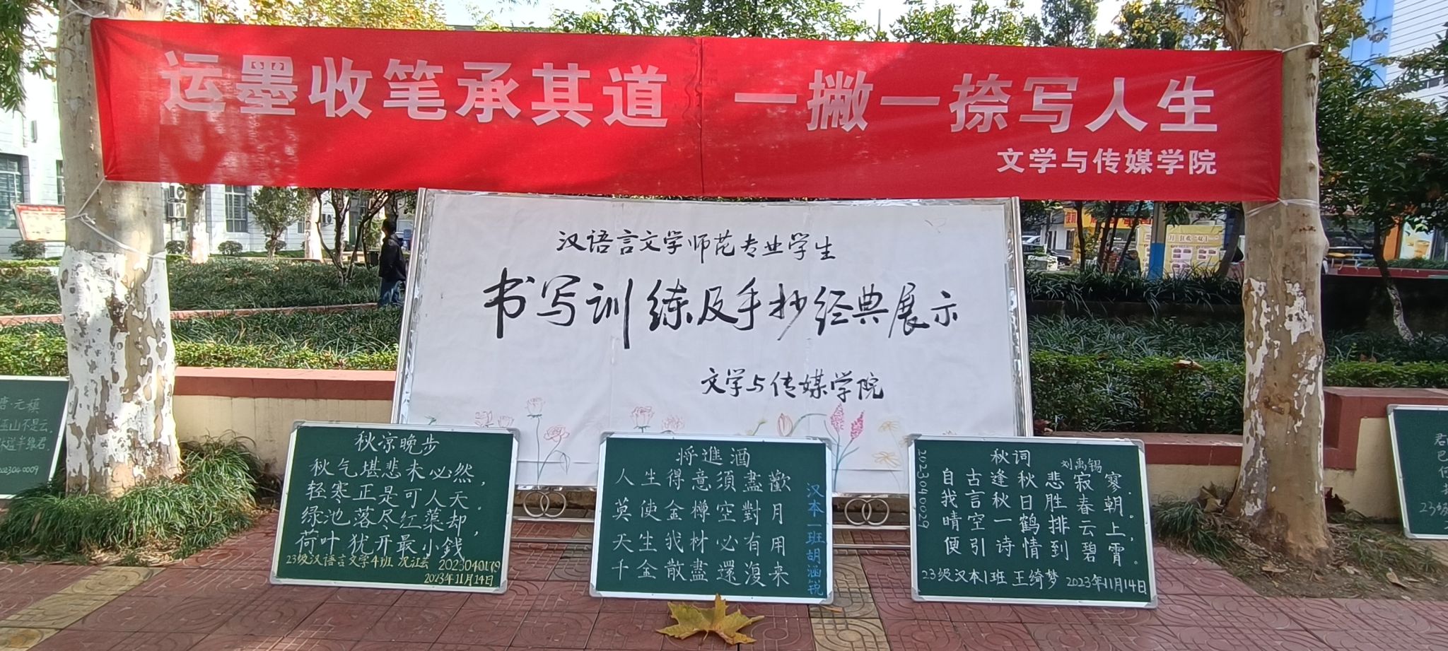 为了弘扬中华优秀传统文化,提高汉语言文学师范专业学生的书写水平,促进同学们相互学习共同进步的良好学风,11月中旬院组织举办2023级汉语言文学专业师范生板书训练及手抄经典展示活动。活动主题为“运墨收笔承其道,一撇一捺写人生”。
