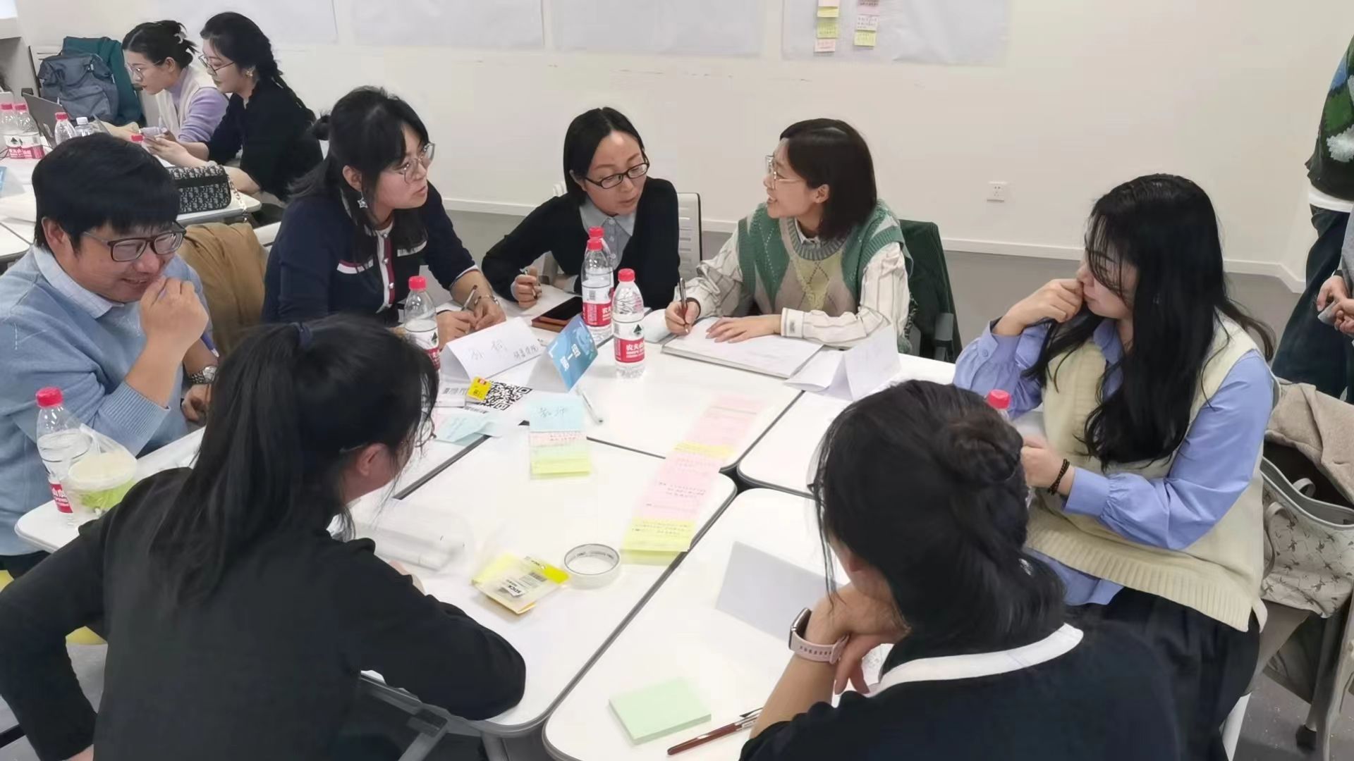 卢卓元副教授将与会教师分成五个小组,并向大家介绍了TOP中的三种引导法则,即焦点讨论法、共识工作坊、行动计划工作坊,围绕“如何将写作贯穿到大学四年整个过程和所有课程中”这一问题,各小组通过头脑风暴、达成共识、制定方案、展示成果、总结发言五个步骤展开深度讨论。