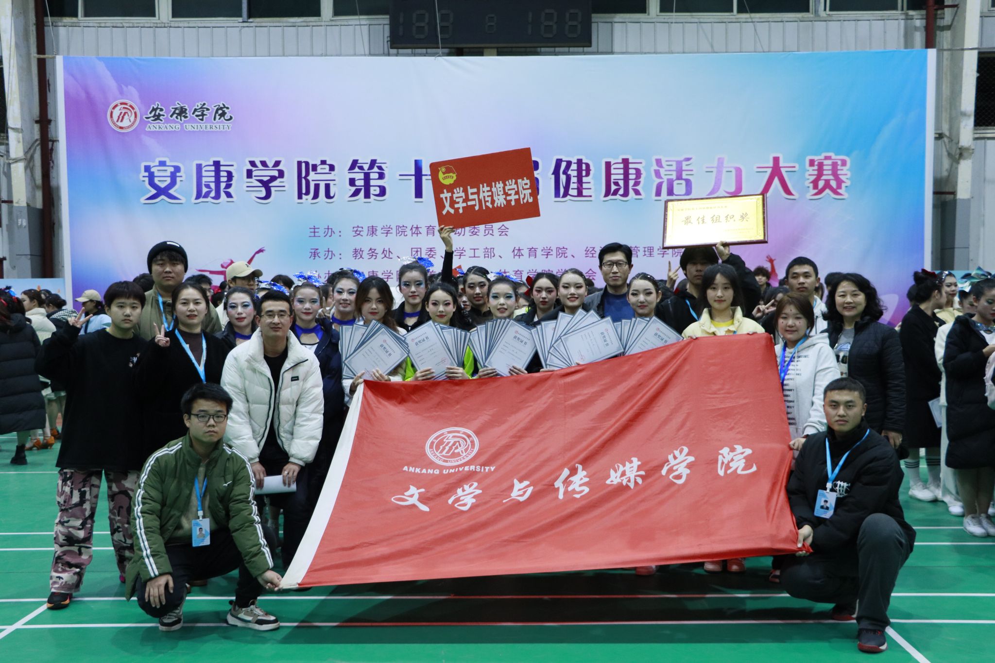 2023年12月8日下午,pp电子网站体育运动委员会主办的第十四届健康活力大赛决赛在江南校区体育馆圆满落幕。pp电子网站代表队在本次大赛中荣获最佳组织奖,团体项目斩获多项荣誉:体育舞蹈伦巴一等奖、校园青春健身操一等奖、体育舞蹈恰恰一等奖、花球啦啦操二等奖、健身排舞二等奖。