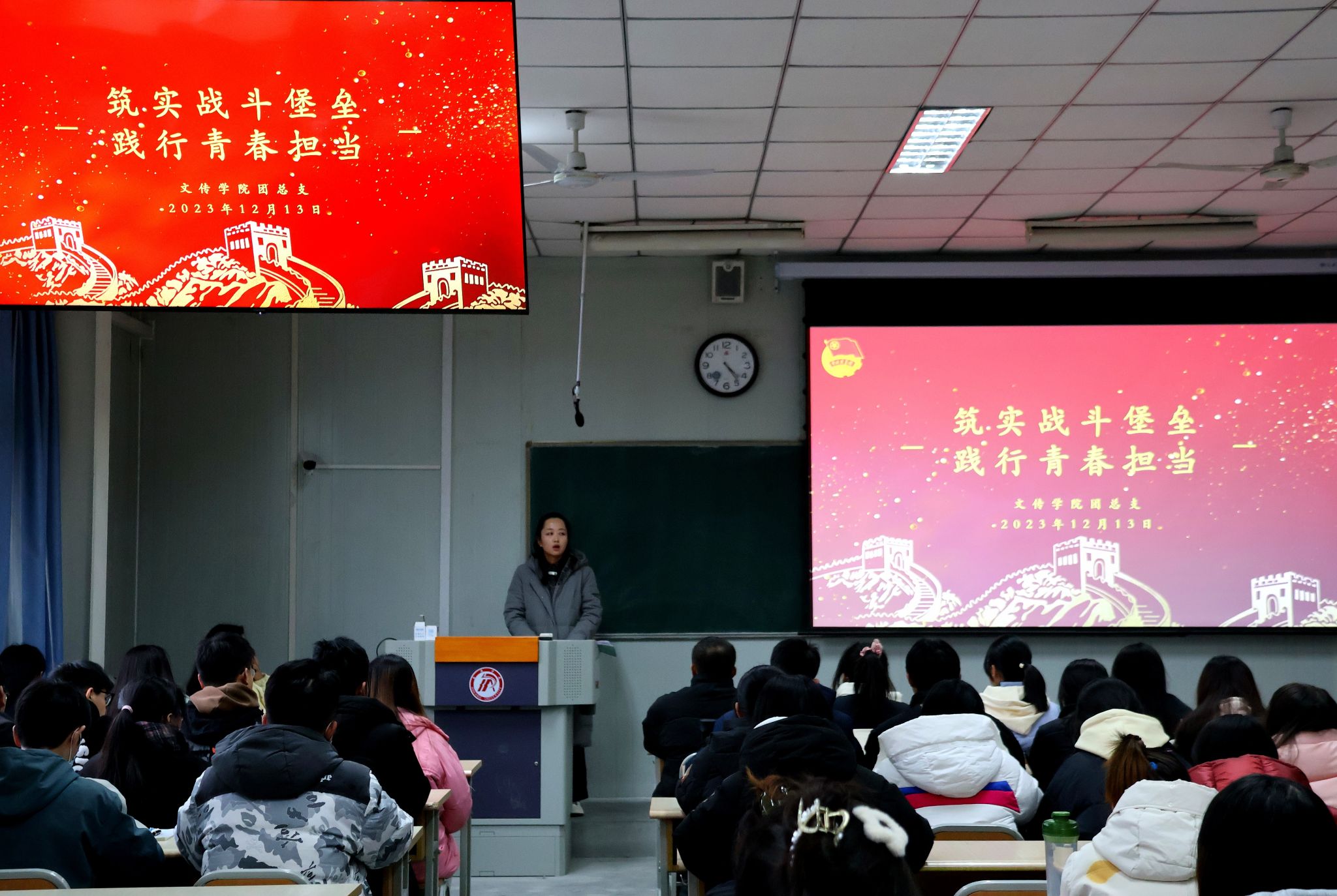 彭潇带来《筑实战斗堡垒,践行青春担当》的主题团课,围绕“夯实基础团务,明晰岗位职责”“第二课堂成绩单制度”“团员和青年主题教育”三个方面展开讲解。她指出,基层团组织需围绕“三力一度”,对标“五个好”的工作原则,完善组织建设。以“班团一体化”为切入点,厘清团学干部职责和分工,强调团学干部只有掌握过硬本领,才能切实团结和服务广大青年,发挥基层团支部的战斗堡垒作用。