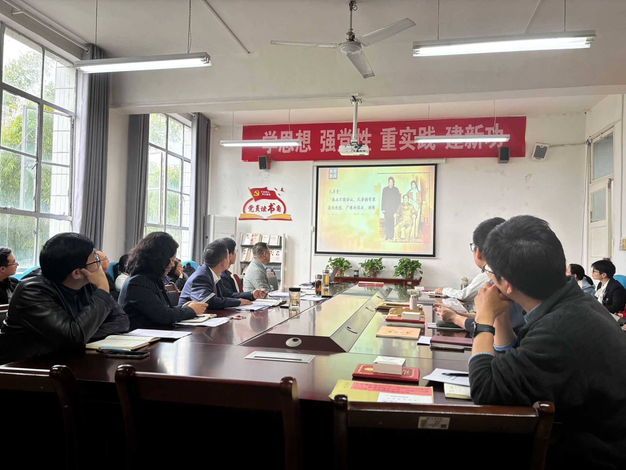会上,教师们还进行了党史专题学习、集体观看了红色家风故事教育视频。