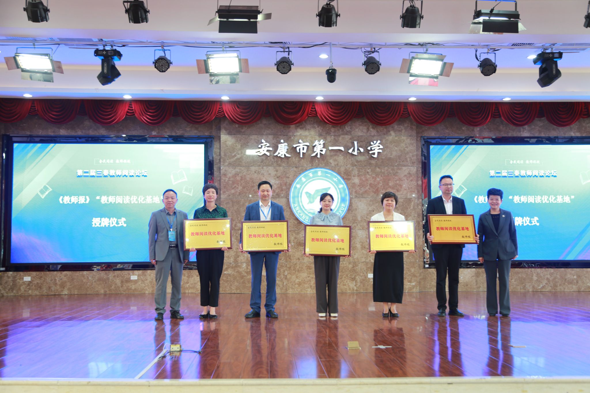 论坛开幕式上,安康市教体局局长屈晓红致辞,陕西省教育报刊社总编辑郭鹏讲话,pp电子网站pp电子网站院长杨运庚出席开幕式并为陕南地区教师阅读优化基地学校授牌。