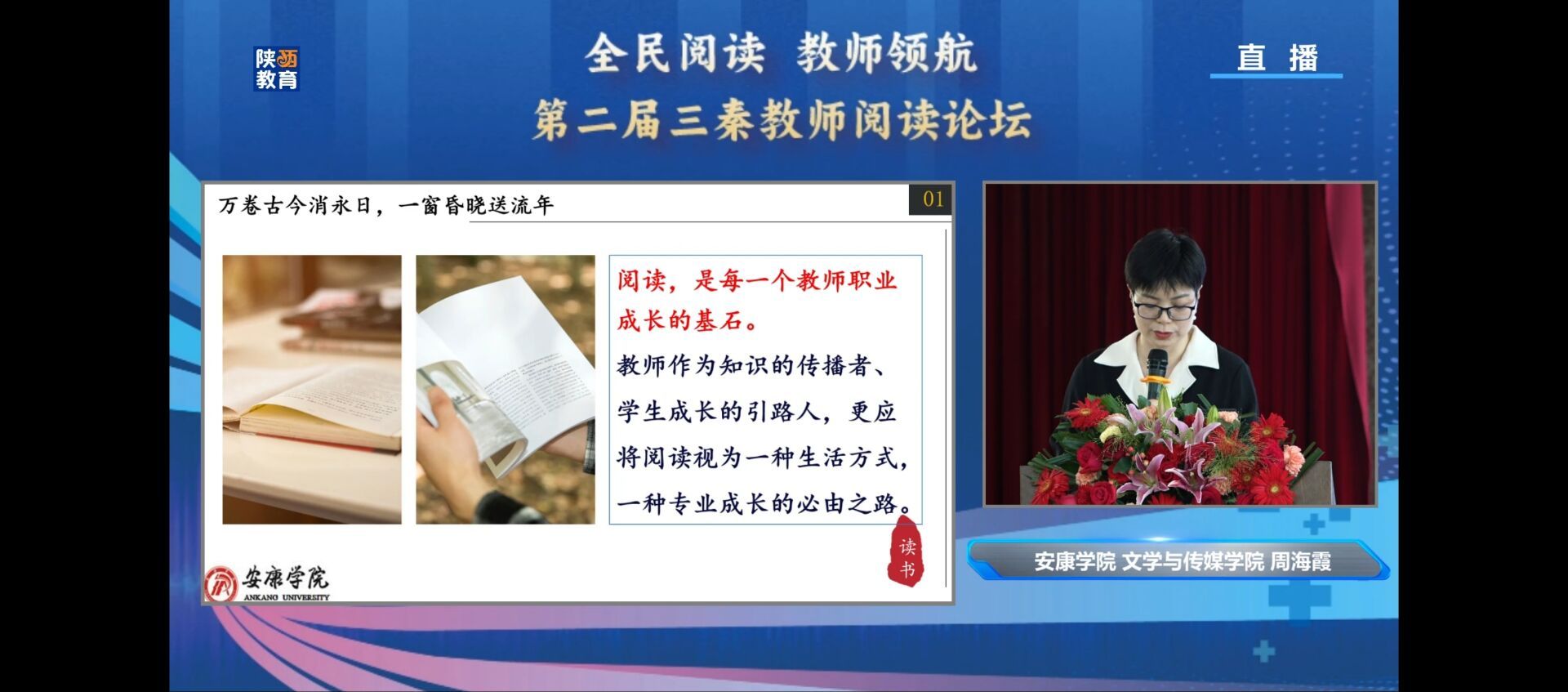 4月27日,由中共陕西省委教育工委和陕西省教育厅指导的“全民阅读 教师领航·第二届三秦教师阅读论坛”陕南专场在安康市第一小学隆重举行。该论坛由陕西学前师范学院与陕西教育报刊社共同主办,pp电子网站pp电子网站和陕西省中小学幼儿园教师发展中心共同协办。论坛旨在展现陕西教师群体阅读经验,分享陕西教育阅读工作经验智慧,弘扬践行“教育家精神”,引领全省中小学教师争做新时代好老师,为推动全民阅读凝聚三秦教师群体力量。来自西安、延安、汉中、安康的9名专家在论坛现场做了专题分享报告,安康市六百余名中小学教师现场参会学习,两万余名教师线上观看同步直播。