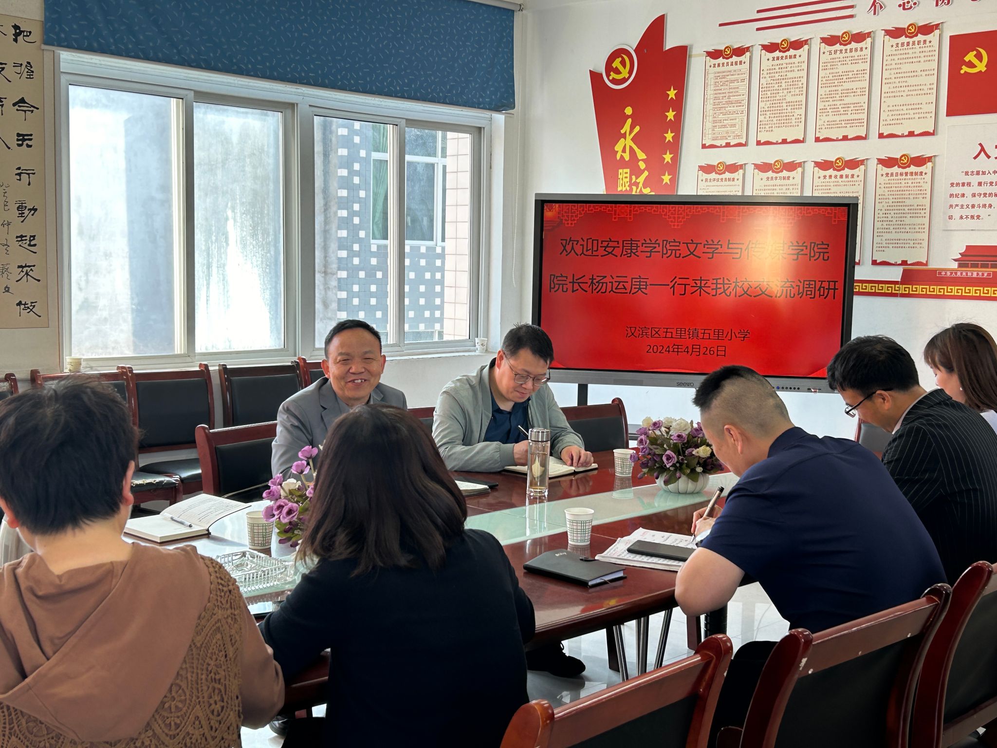 为进一步提升汉语言文学师范生人才培养质量,落实教育部“访企拓岗”促就业专项行动要求,4月26日,pp电子网站院长杨运庚、教学副院长朱云和汉语言文学系主任谭诗民一行赴汉滨区五里小学征求用人单位和毕业生对我校汉语言文学专业人才培养的意见建议,并洽谈见习实习就业合作事宜。五里镇中心校校长、党总支书记张立安,五里镇中心校教研组长邓玉林,五里小学校长刘浩骋、党支部书记尹娟、副校长李宁、李巍,语文教研组长邓新萍及pp电子官网毕业生代表参加了调研会议。