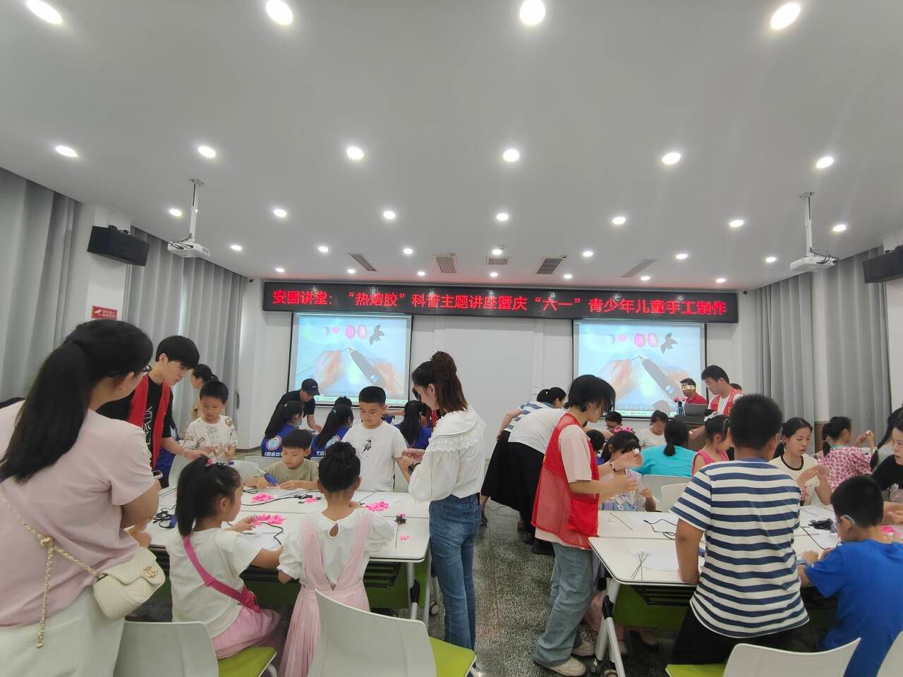 2024年6月1日下午,安康市图书馆联合东莞市成铭热熔胶博物馆在安图报告厅举办“热熔胶”科普暨“六一”青少年儿童手工制作活动,活动邀请了东莞市成铭热熔胶博物馆馆长王贤胜作为主讲嘉宾。pp电子网站派出四名志愿者参与志愿服务,协助活动开展。