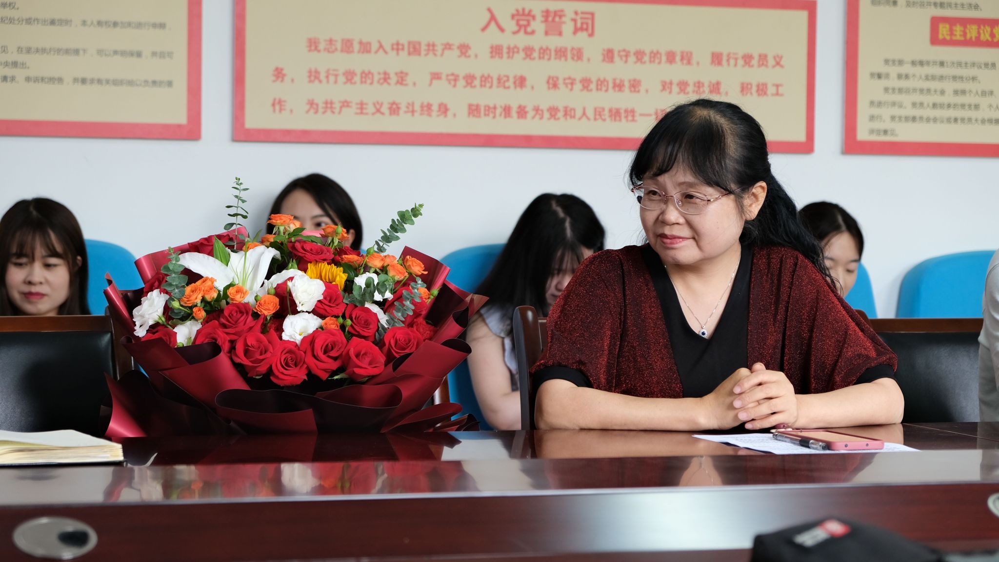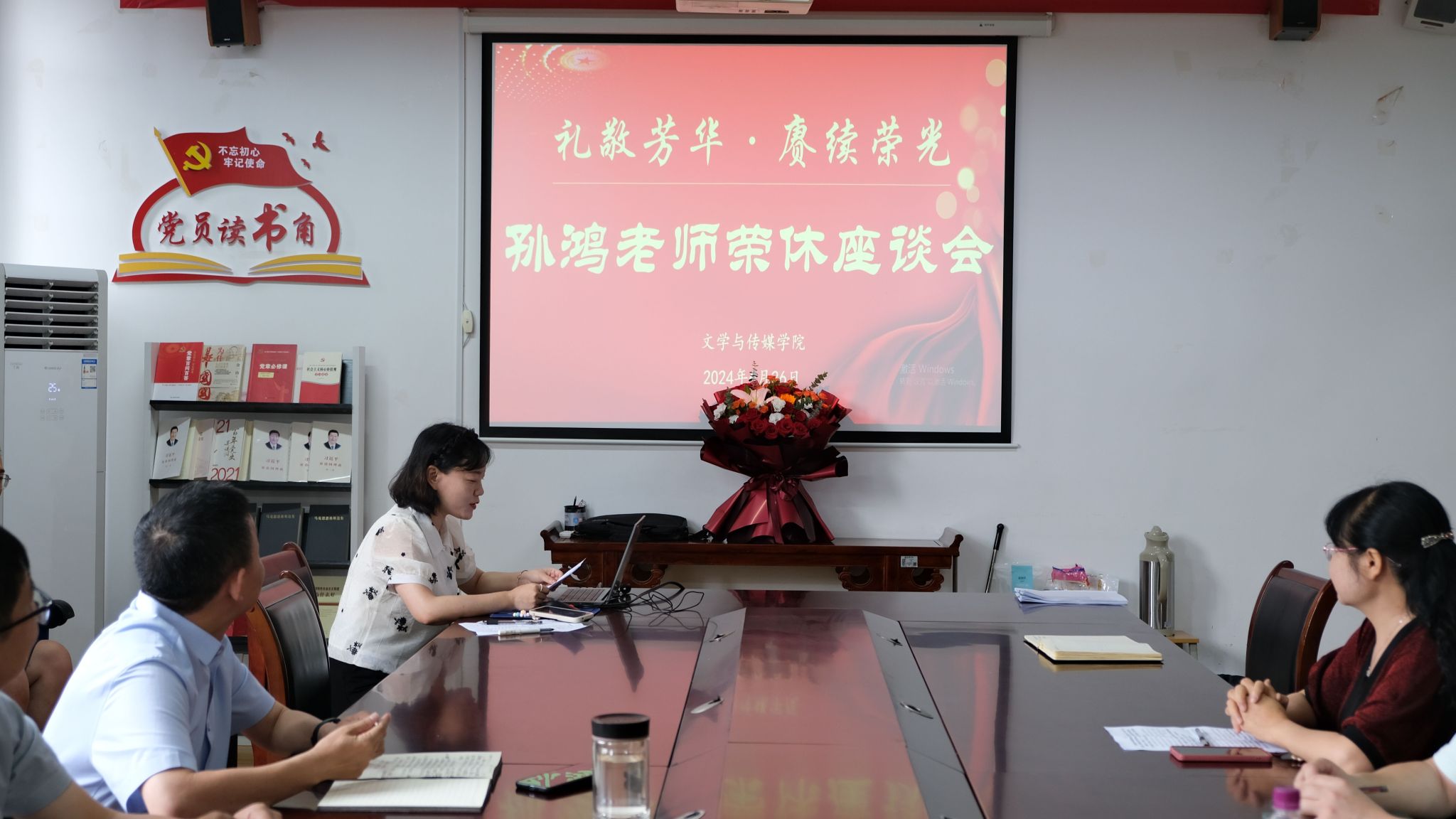 座谈会上,全体教师首先一起观看了“孙老师的荣休专属vlog”视频,回顾了孙教授从入校到退休的近40年人生经历和职业生涯中的精彩瞬间。院长杨运庚代表学院向孙教授献上鲜花,表达最崇高的敬意和最诚挚的感谢。