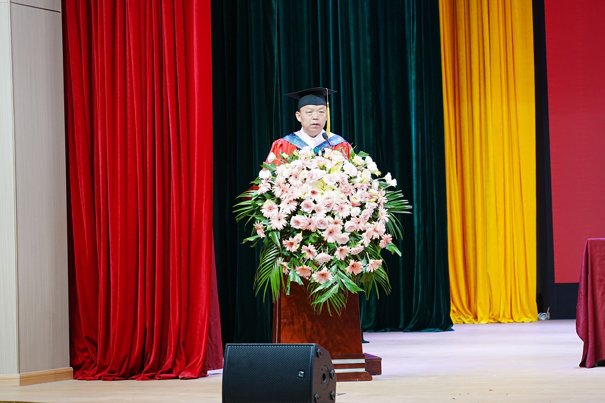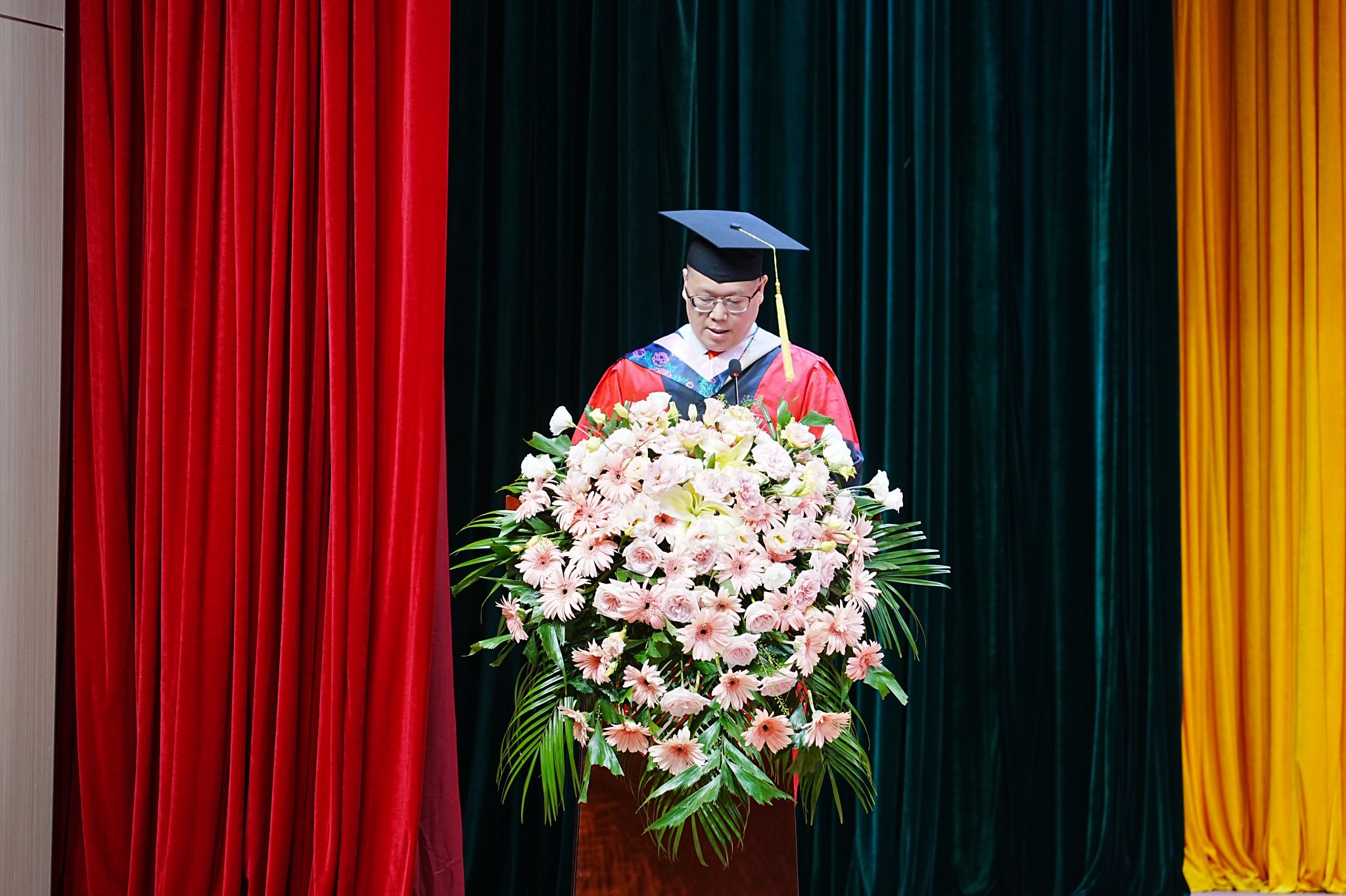 pp电子网站院长杨运庚在毕业致辞中给毕业生提了三点希望:一是做合格好公民、塑造个人好形象,希望毕业生从法律角度在享有法律规定的权利同时,一定要履行法律规定的义务,不得只讲权利不履行义务;从价值角度希望毕业生秉持诚实、公正、公平、尊重、自律等道德、伦理、行为标准,毕业后从做合格好公民开始,从点滴做起,从小事做起,塑造良好的个人形象。二是敬畏工作,勇挑重担,做人做事,要有敬畏之心,以积极的心态对待工作,工作是实现自身价值、成就梦想的路径,无论以后从事什么工作,都要以自己的工作为荣,把工作放在心中最重要的位置,时时放心不下。三是勤学善思,提升自我,学习,是一种生活态度、是一种工作责任、是一种价值追求,学习是一种担当、是一种信念、是一种习惯、是一种克服本领恐慌的妙药良方,希望毕业生毕业后始终把学习当作一种追求和生活趣味,树立终身学习的意识和习惯。