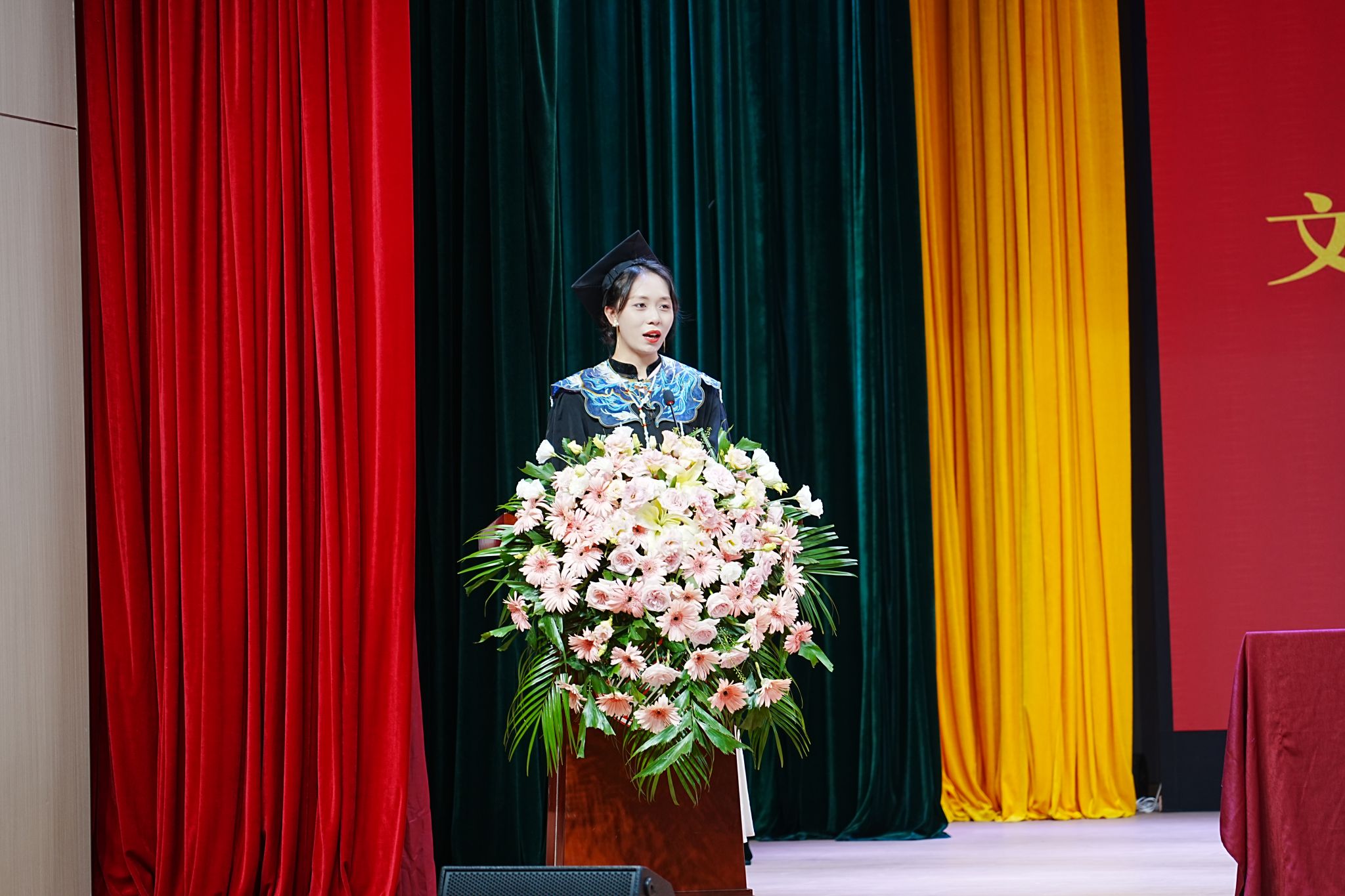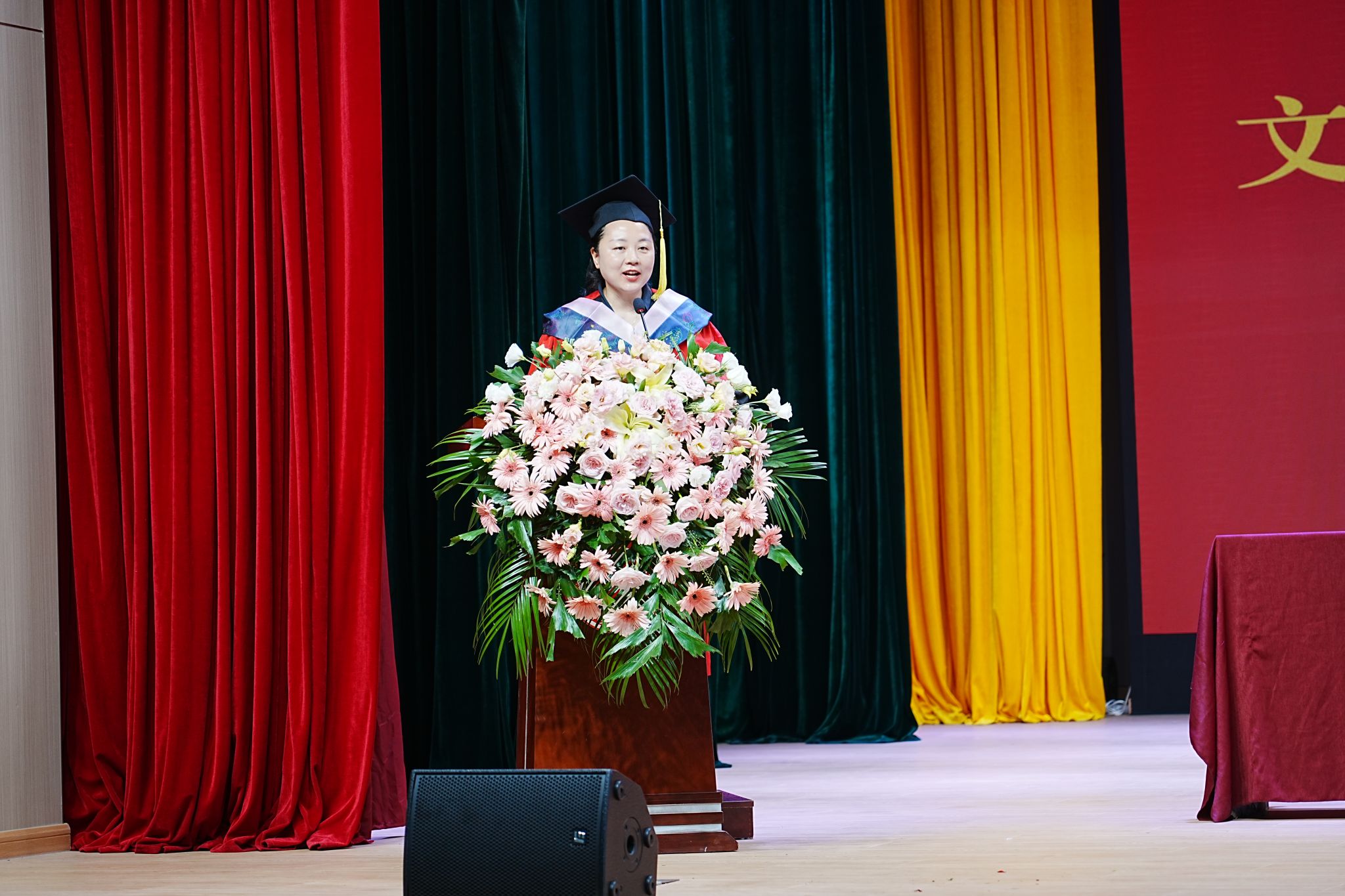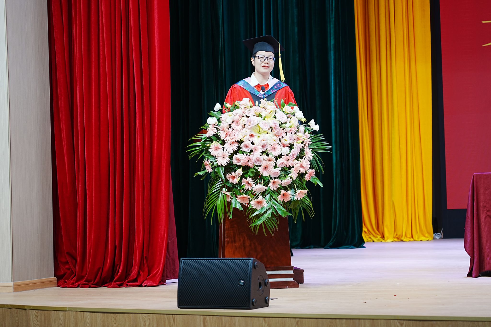 学生代表王瑜瑶代表pp电子网站全体毕业生发言,她首先感谢学院四年来的精心培育、感谢恩师的悉心教诲,希望所有毕业生都能带着pp电子网站“笃学、尚行、励志、创新”的校训精神,努力提升自己,为实现梦想而奋斗,创造出属于自己的辉煌。