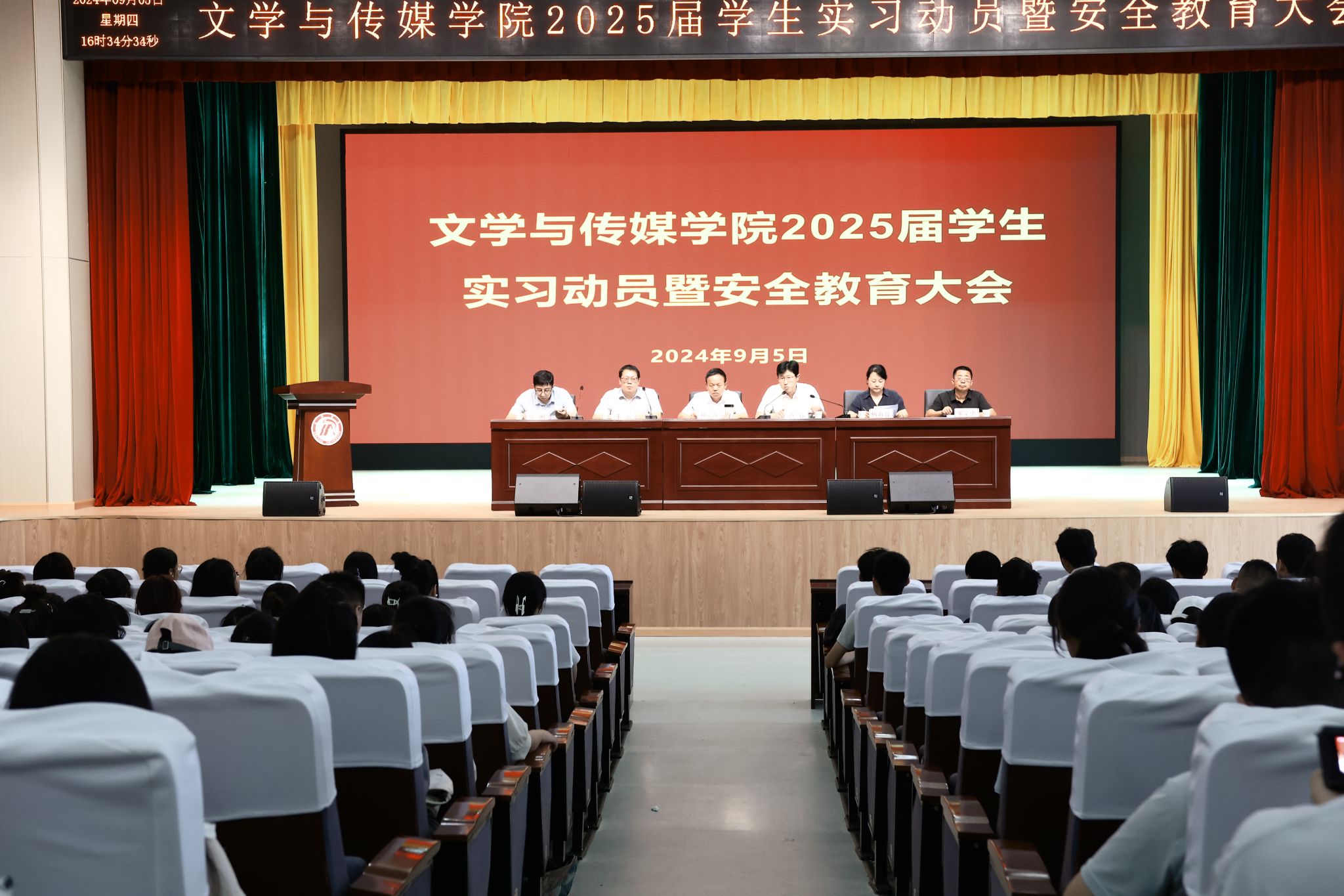 2024年9月5日下午,pp电子网站2025届学生实习动员暨安全教育大会在学校大礼堂举行,学院领导班子全体成员、毕业班辅导员及2025届全体学生参加了大会,大会由教学副院长朱云主持。