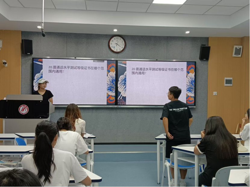 为了大力推广国家通用语言文字的使用深入贯彻落实推普活动,语言文字社在曹璇璇老师的指导下,20249月18下午在1205教室开展普通话知识竞赛活动。