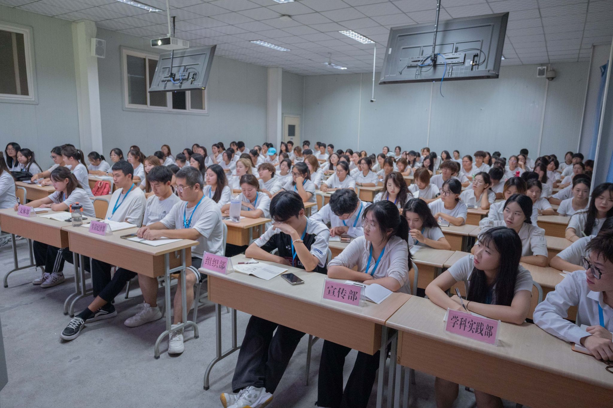 会议伊始,各部门负责人依次总结上学期工作情况,阐述新学期工作部署。在过去一学期里,在全院师生的积极参与和共同努力下,学院取得了卓越的成绩。秘书部将继续以科学严谨的态度,有序管理文件、促进学生分会内部沟通顺畅。生活纪律部将通过组织宿舍风采大赛、宿舍定期检查、早操纪律维持等活动,增强同学们的纪律意识,营造良好的学习生活环境。学习部将积极开展两早查勤,举办辩论赛、粉笔字大赛等特色活动营造良好学风、提升专业技能。文体部将认真筹备健康活力大赛、院系新老生篮球友谊赛等文体活动,锻炼体魄,增强同学们的集体荣誉感。组织部、宣传部和学科实践部也分别就新生团籍管理、政治理论学习计划、PU口袋系统管理等问题作以汇报。