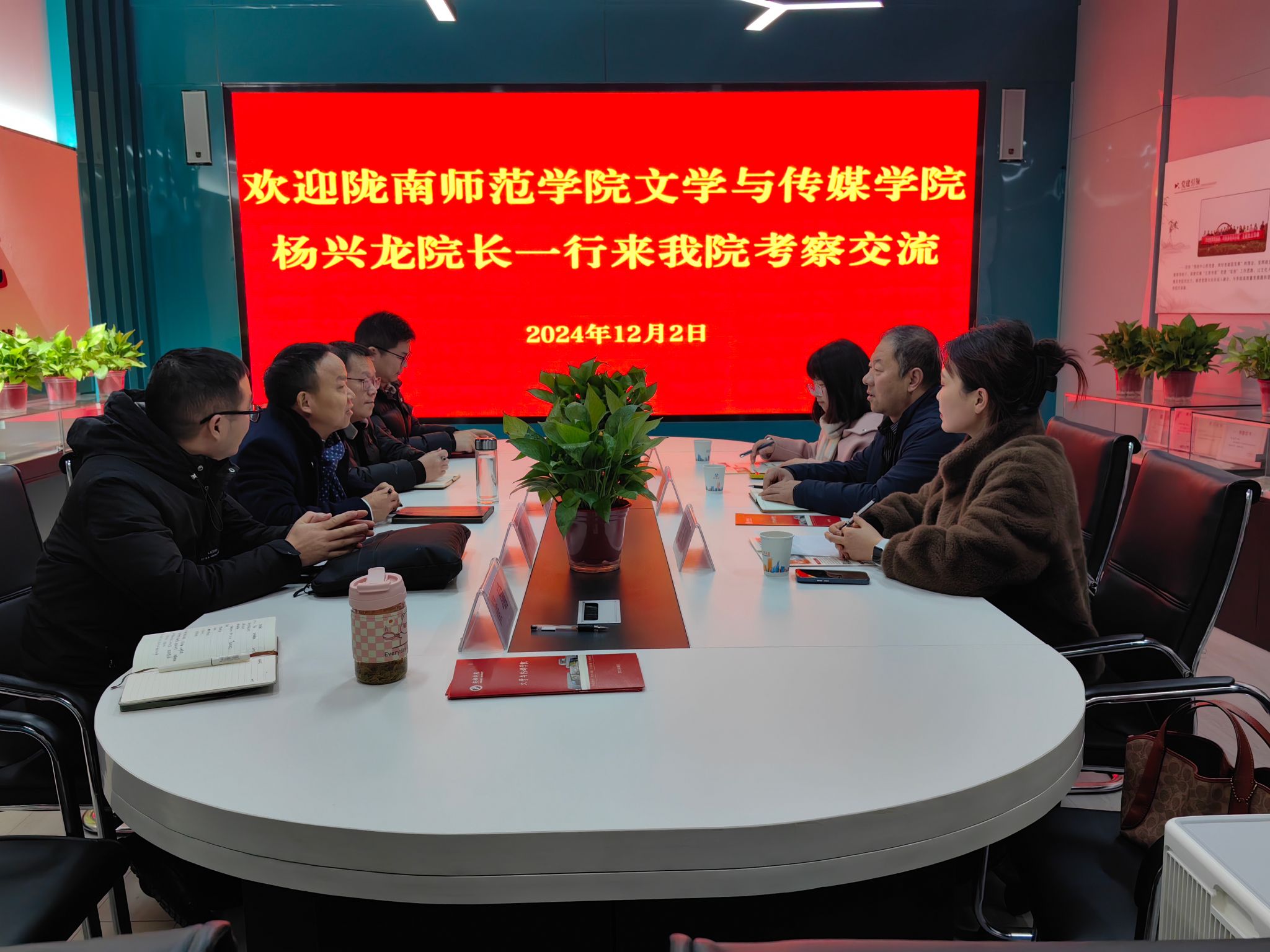 12月2日上午,陇南师范学院pp电子网站杨兴龙院长一行3人来pp电子官网考察交流,pp电子网站院长杨运庚、副院长朱云、秘书学专业负责人胡少山、秘书与新媒体系主任张建涛、党政办主任崔瑜参加交流座谈。