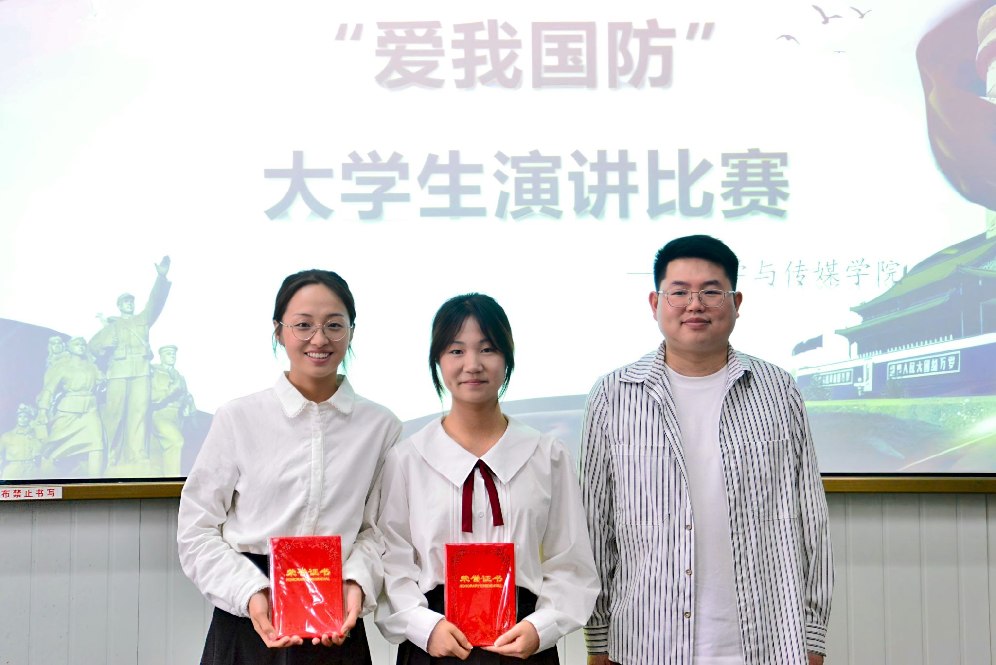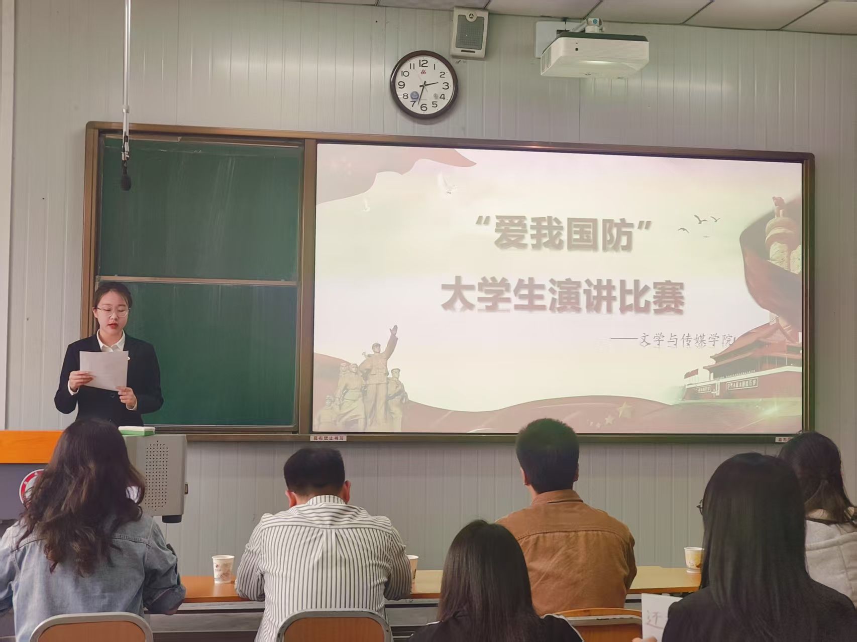 2025年4月11日下午,由pp电子网站演讲辩论社和播音主持社共同举办的“爱我国防”主题演讲比赛在江南校区十号教学楼1036报告厅举行,演讲辩论社指导老师余珊、播音主持社指导老师黄治强、pp电子网站团总支书记彭潇、辅导员刘言军、喻言出席活动并担任比赛评委,学院各专业100余名学生观看了本次比赛。
