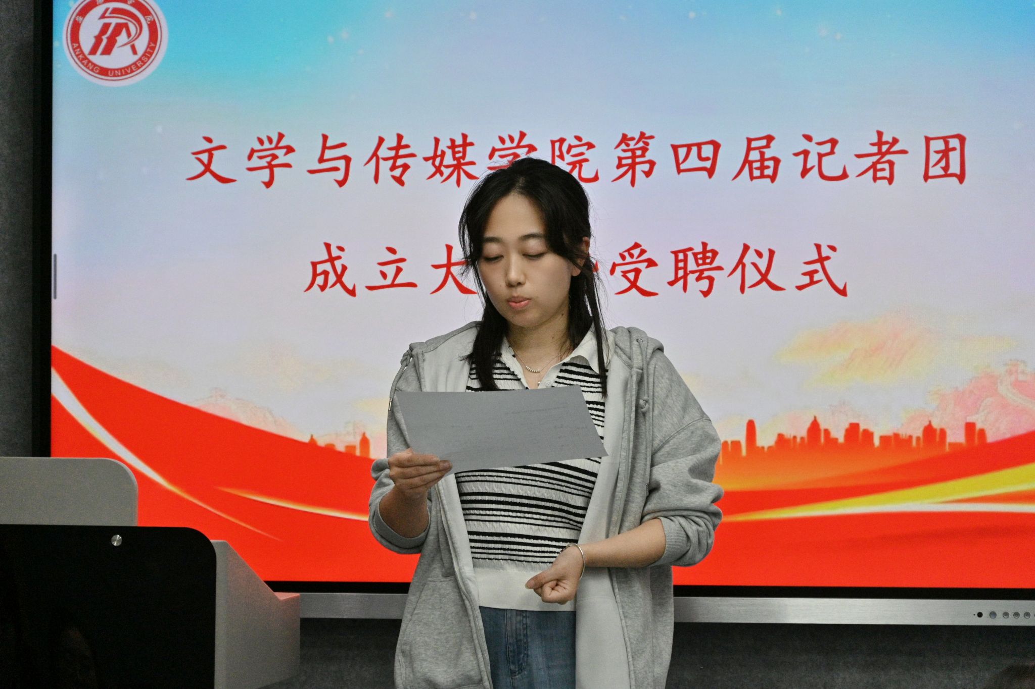 10月10日晚7时,pp电子网站在1205教室举行第四届记者团成立大会暨受聘仪式。团总支书记彭潇,辅导员刘言军、喻言,学生会主席团成员及社团全体成员参会,仪式由汉语言文学2023级3班杜宇飞主持。