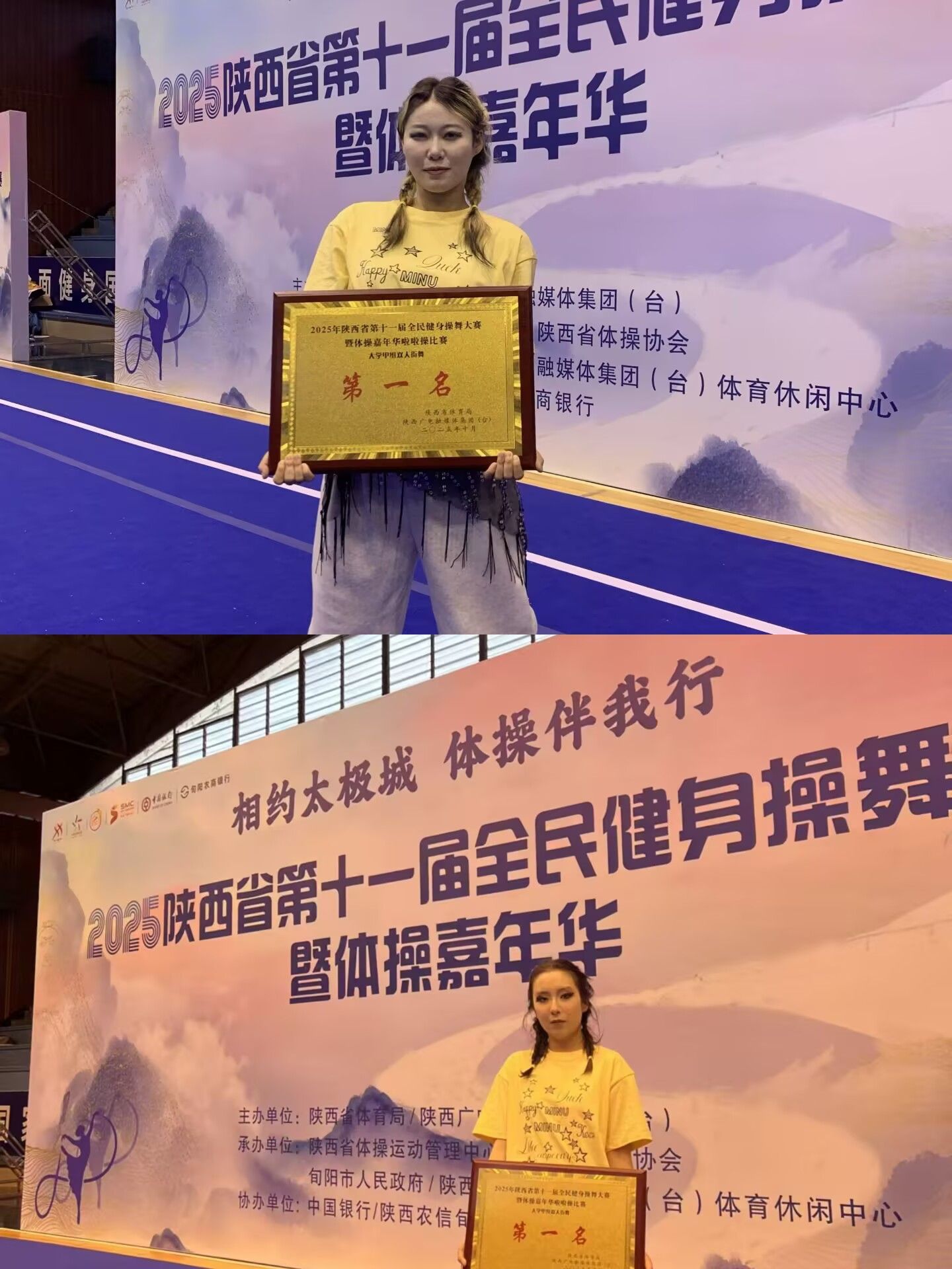 10月25日,陕西省第十一届全民健身操舞大赛暨体操嘉年华单项竞赛在旬阳圆满落幕。pp电子网站汉语言文学专业2024级学生张佳旋和陈曦荣获“大学甲组双人街舞”第一名。
