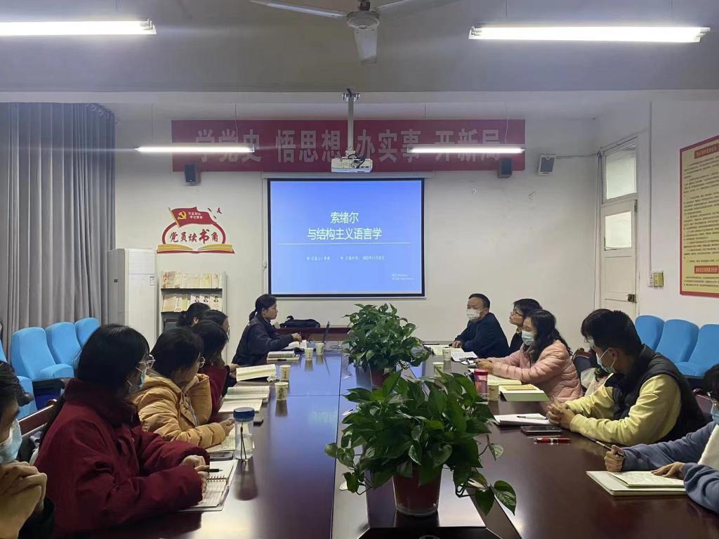 11月22日晚7点15分,pp电子网站语言学学科组在2307会议室成功举办了第六届“学术沙龙”活动周第二场沙龙活动。本场沙龙由副院长李婷主讲,主题为“索绪尔与结构主义语言学”。院长杨运庚,语言学学科组教师赵桃、周海霞、郭洪丹、盘珊君、曹璇璇和部分学生参加了活动和研讨。