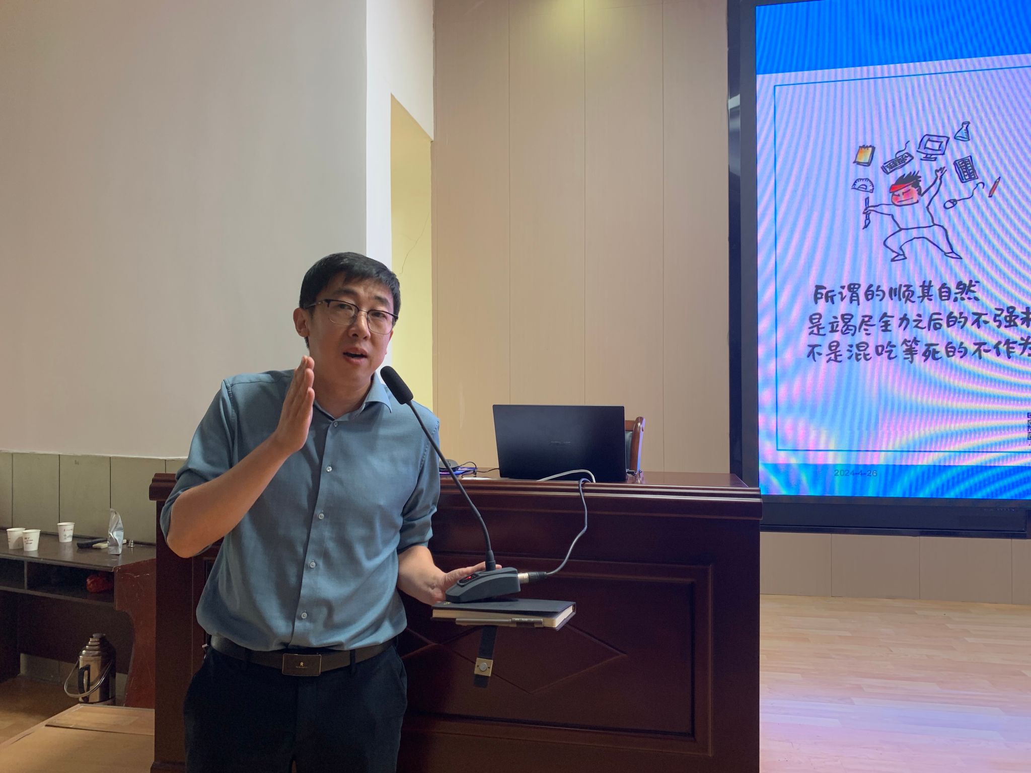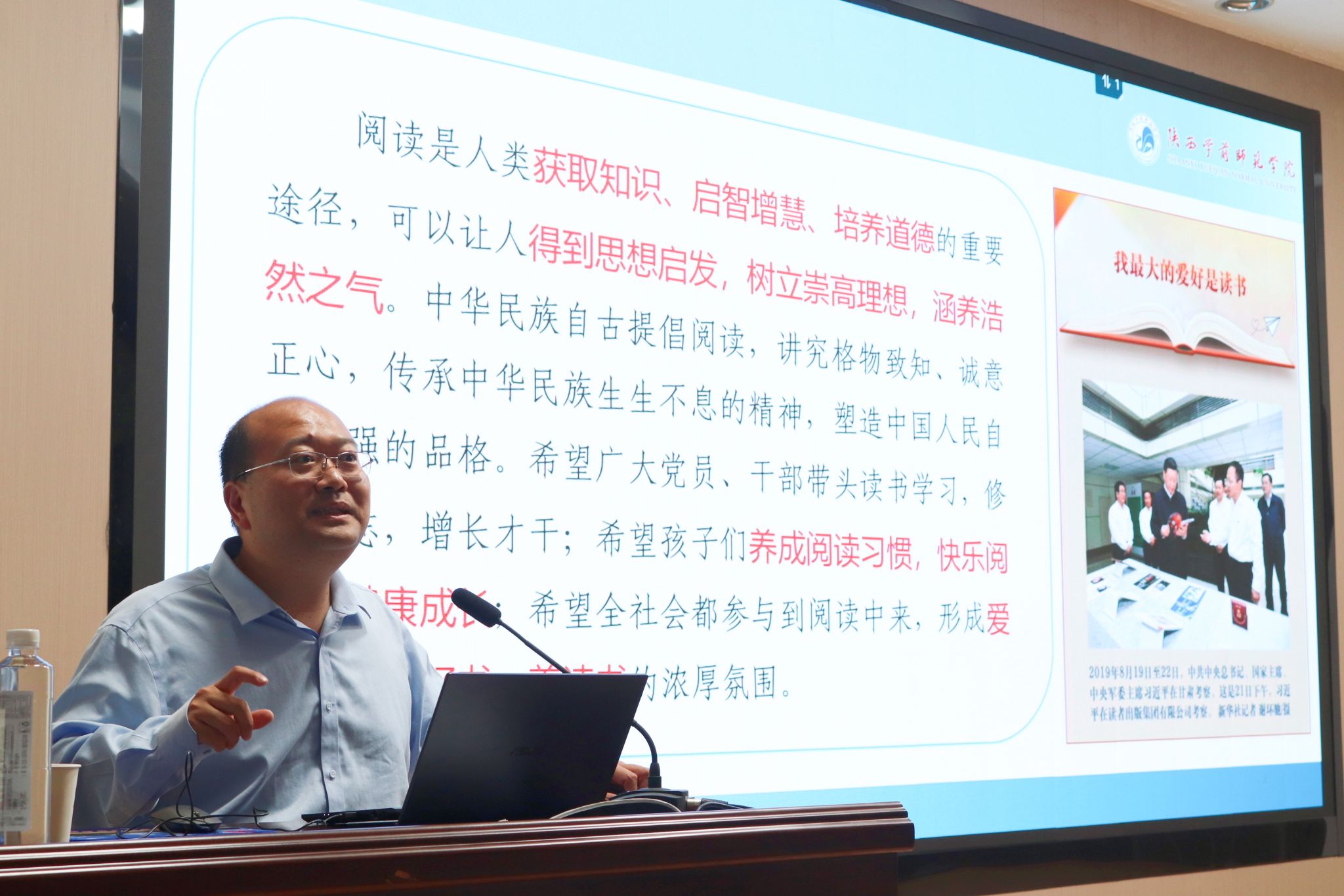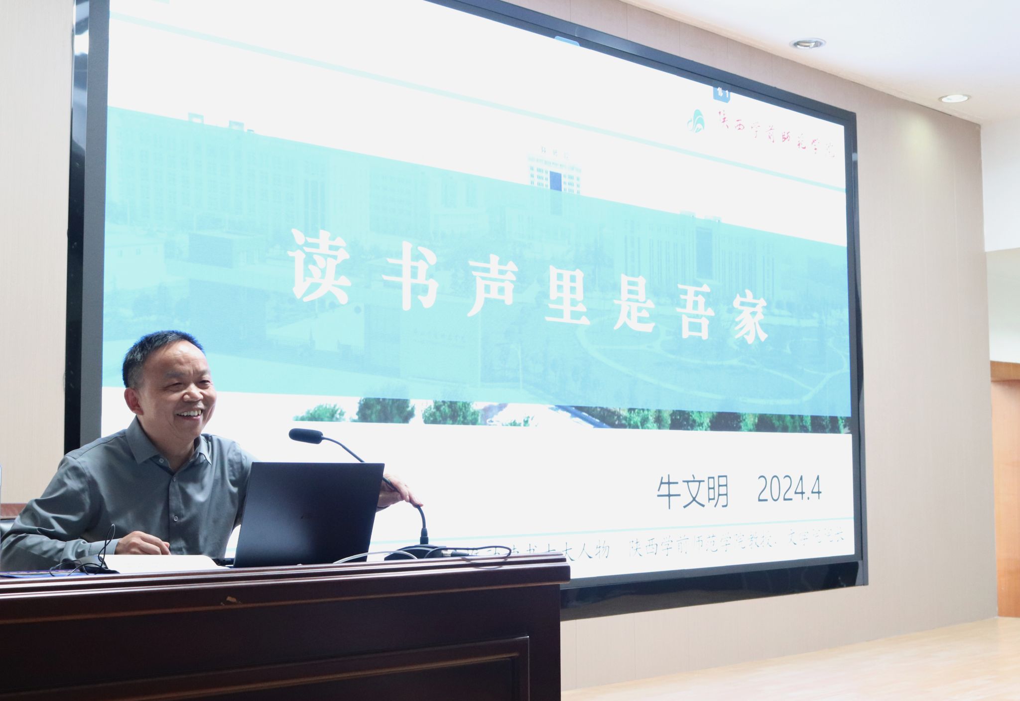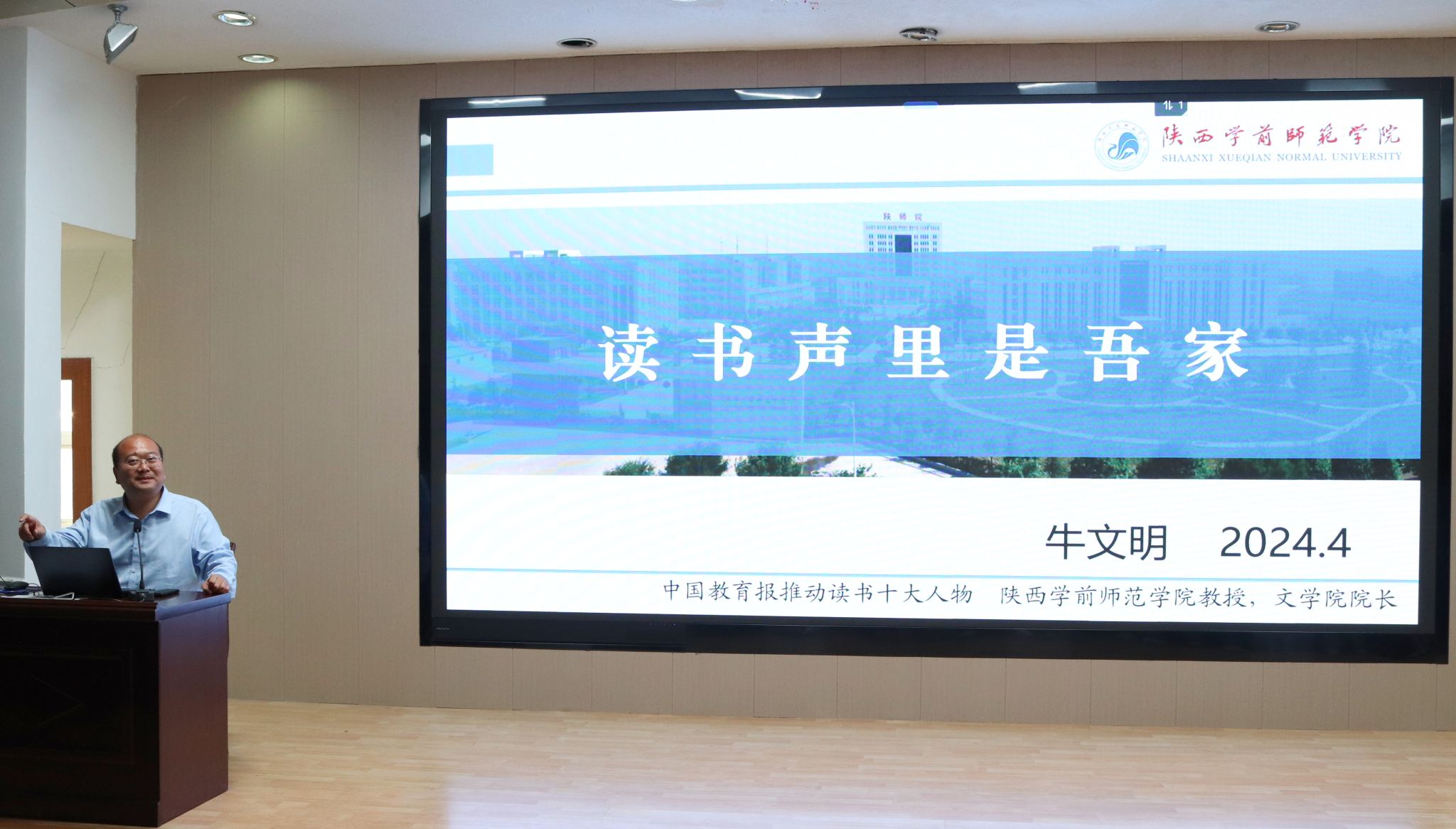 4月26日下午,陕西学前师范学院文学院院长牛文明教授应邀来我校为pp电子网站2023级学生做了“读书声里是吾家”的专题读书报告。本次报告由pp电子网站院长杨运庚主持。